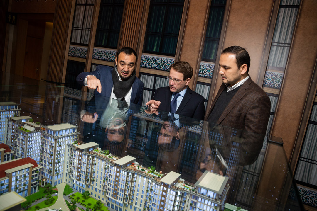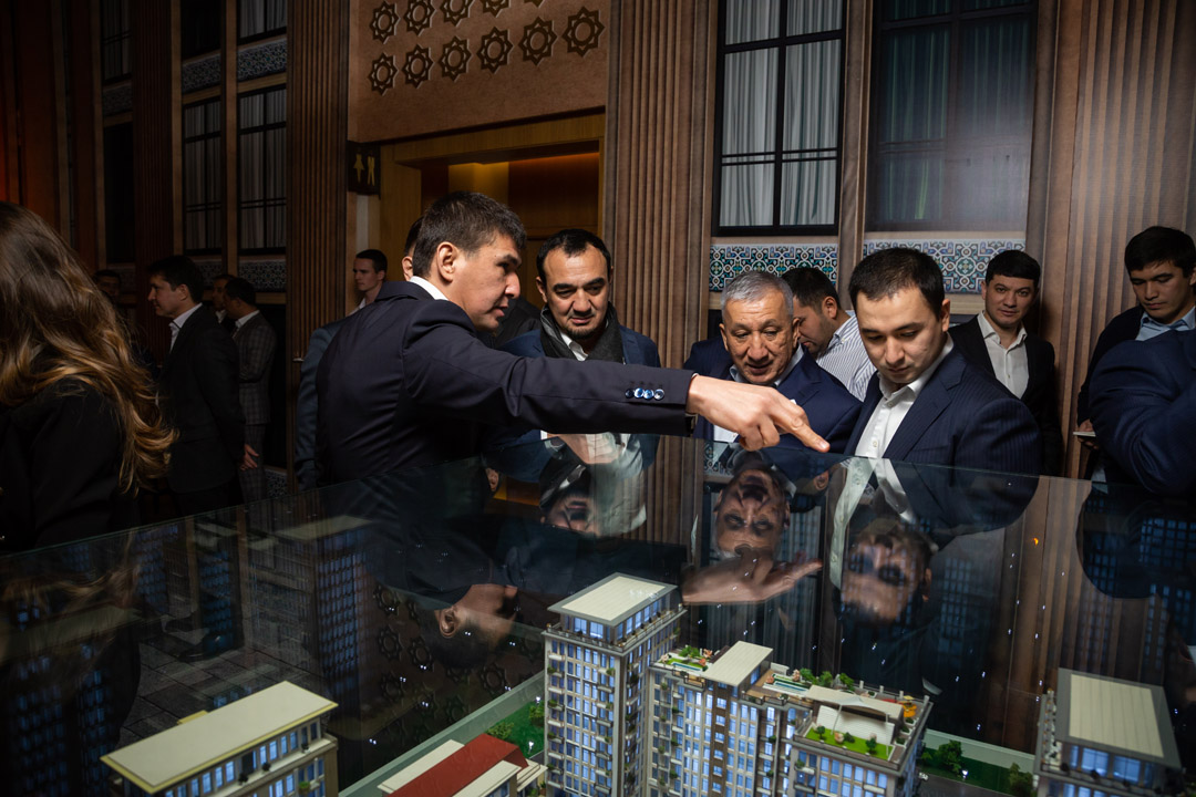 Taqdimot munosabati bilan mehmonxonaning tantanalar zali kompaniya stilistikasida bezatildi. Bunda oq va oltin ranglar ustunlik qildi, xolldagi manzaralar yangi kompleks hovlisi talqini bo‘lib xizmat qildi, mehmonlar e'tiboriga esa Mirabad Avenue maketi taqdim etildi.