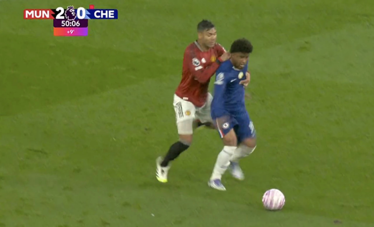 «Qizillar»ning ikkinchi goli ham qiyinchilik bilan urildi, Jyeyms jarima maydonidan to‘pni uzoqlashtirishda muvaffaqiyatsiz harakat qildi, yuqoridan qaytib tushgan to‘pni Shou bosh bilan narigi burchak oldida bo‘sh turgan Kazemiroga yetkazib berdi. Braziliyalik yarimhimoyachi ko‘klarga qarshi doim muvaffaqiyatli harakat qilib kelgan, u Angliyadagi 7 golidan 3 tasini shu jamoa darvozasiga urgan. Ammo bu safar u sariq kartochkasi borligiga qaramay, Andrey Santosni qo‘llari bilan gazonga ag‘darganidan keyin unga ikkinchi sariq kartochka ko‘rsatildi.