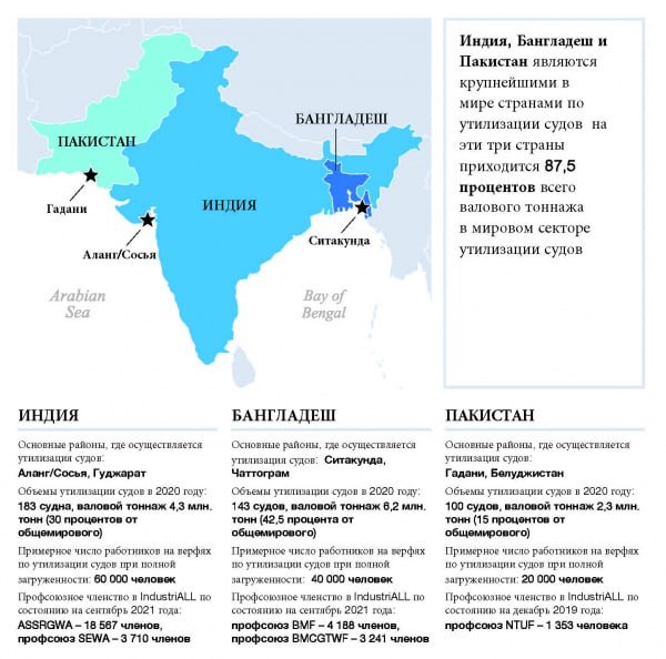 Ayniqsa, Hindistondagi Alang shaharchasi hozirgi kunda turli hajmdagi eski kemalarni utilizatsiya qiluvchi yirik markazga aylanib bo‘ldi. Bu yerda bir vaqtning o‘zida yuzlab kemalar bo‘laklarga bo‘linayotgan bo‘ladi.