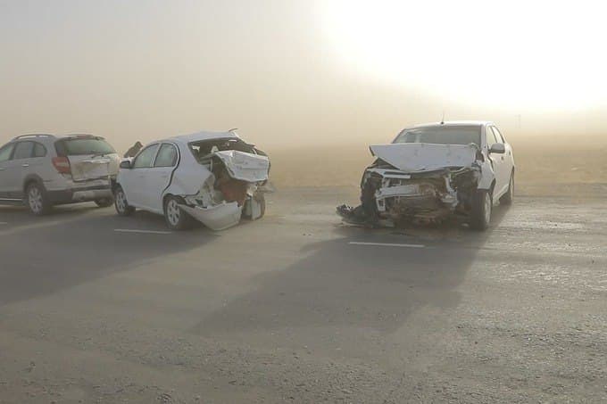 Captiva, driven by U.T. (born in 1985), Nexia, driven by M.E. (born in 1962) and Cobalt, driven by A.T. (born in 1984) cars collided. The incident was caused by a sandstorm that limited visibility and the distance was not maintained.