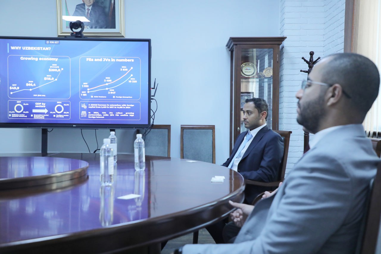 Last week, Deputy Minister of Investments, Industry and Trade Shokhrukh Gulyamov met with a delegation led by Abdullah Abdulrahman Al-Houli, Senior Vice President of Noor for Alternative Investments. The discussions focused on potential partnerships in investment projects, with particular attention on the establishment of a new Islamic bank in Uzbekistan involving Noor Financial Investment Company.
