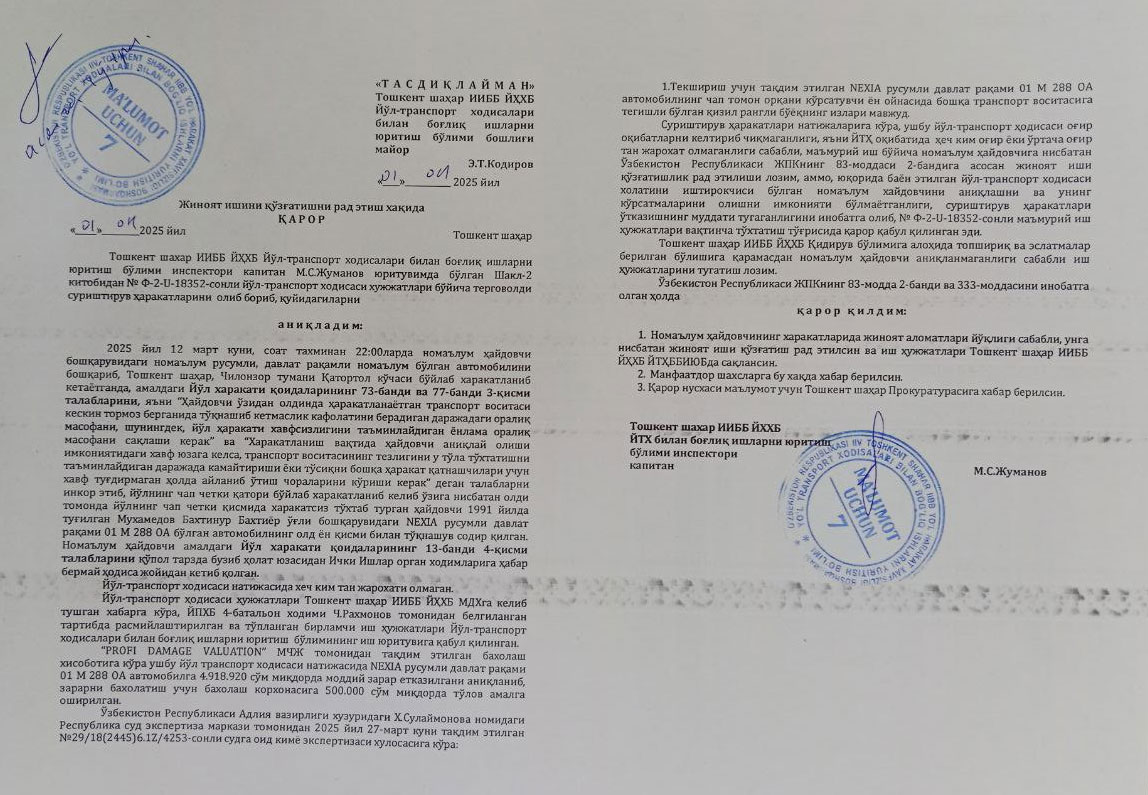 This is considered fleeing the scene of an accident and carries a fine of 30 BRV — approximately 11.25 million soums in 2025. Even if the scratch seems insignificant, do not leave — otherwise you will be found guilty.