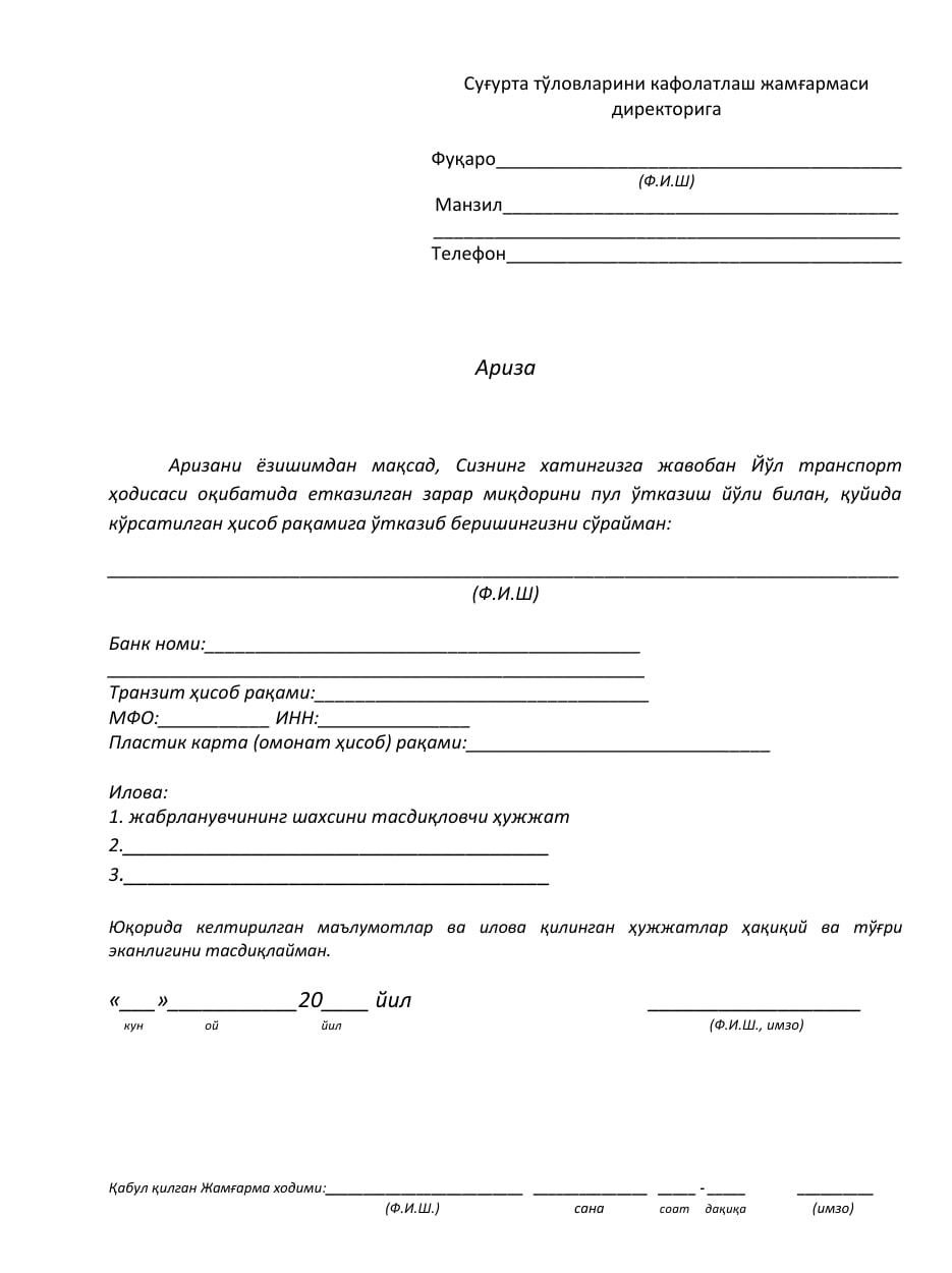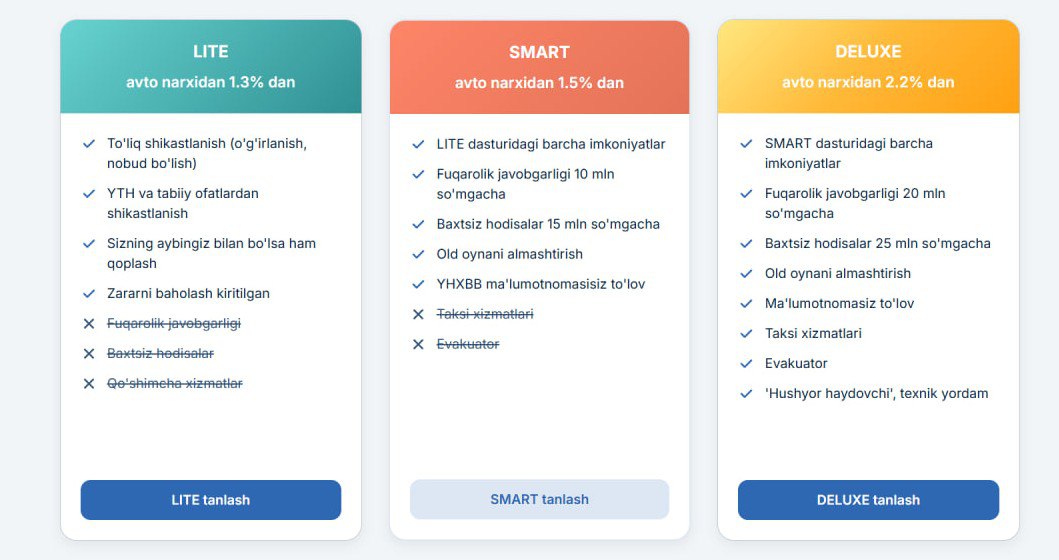 Next, it all depends on the type of insurance. There are two main types in Uzbekistan: