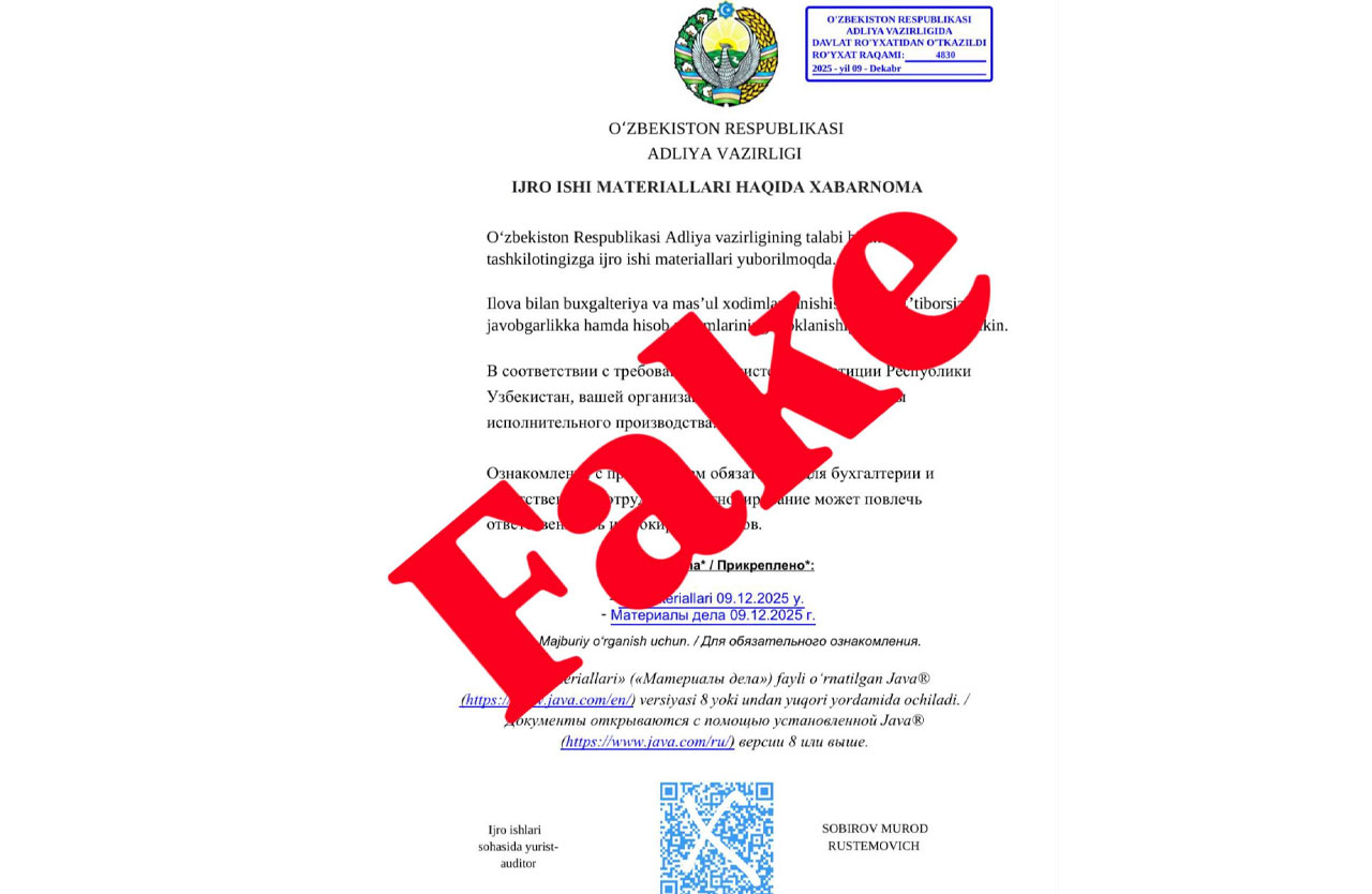 In another case, a fake website was created on the internet claiming that Uzbek citizens were eligible to receive compensation of up to UZS 100 million. It was clarified that these claims do not correspond to reality.