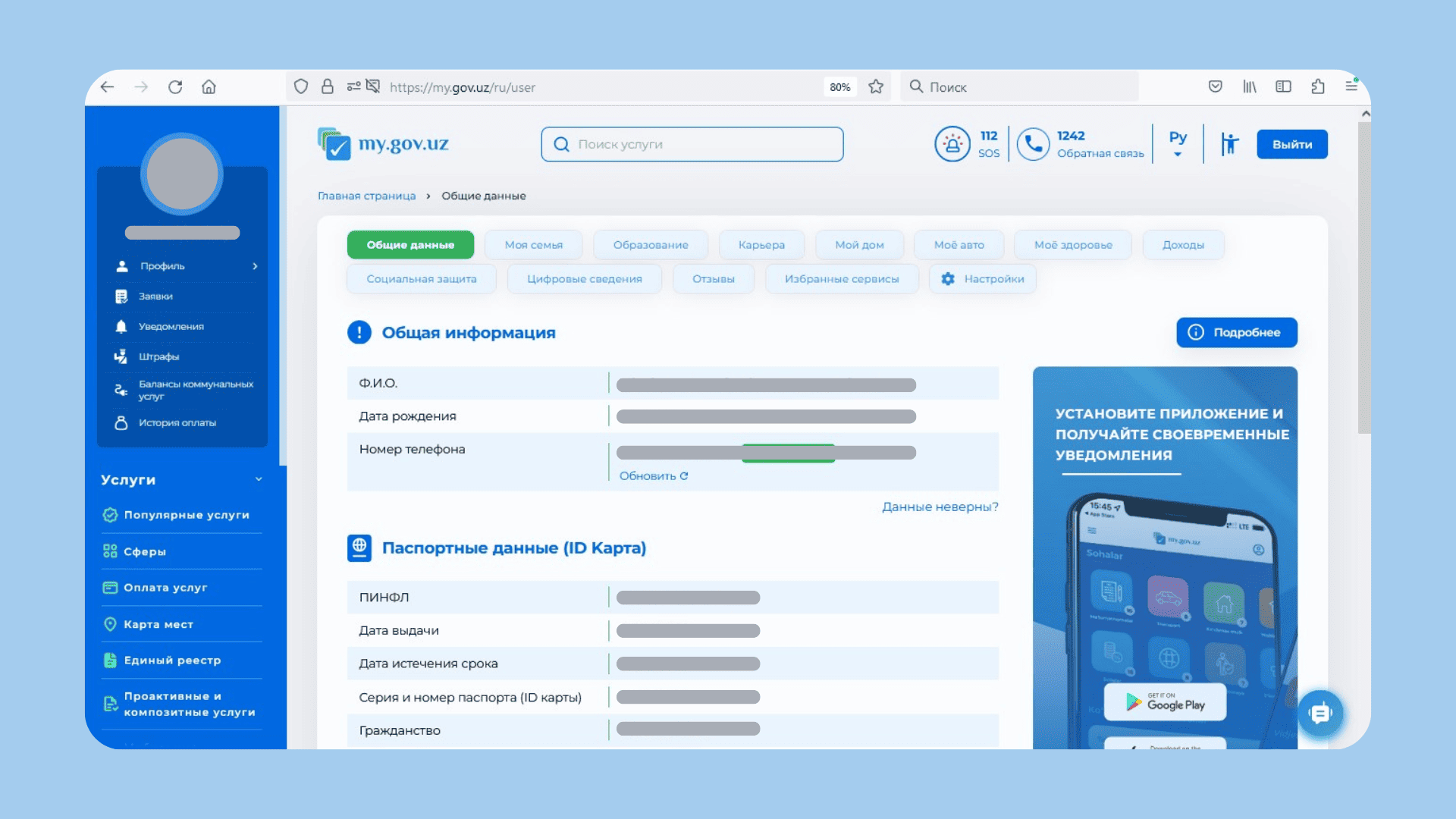 PINFL can also be found in personal accounts on government service portals and in some banking and payment apps. When you use these services for the first time, you may need to enter your passport or ID card details, provide your PINFL, or confirm your identity with a digital signature.