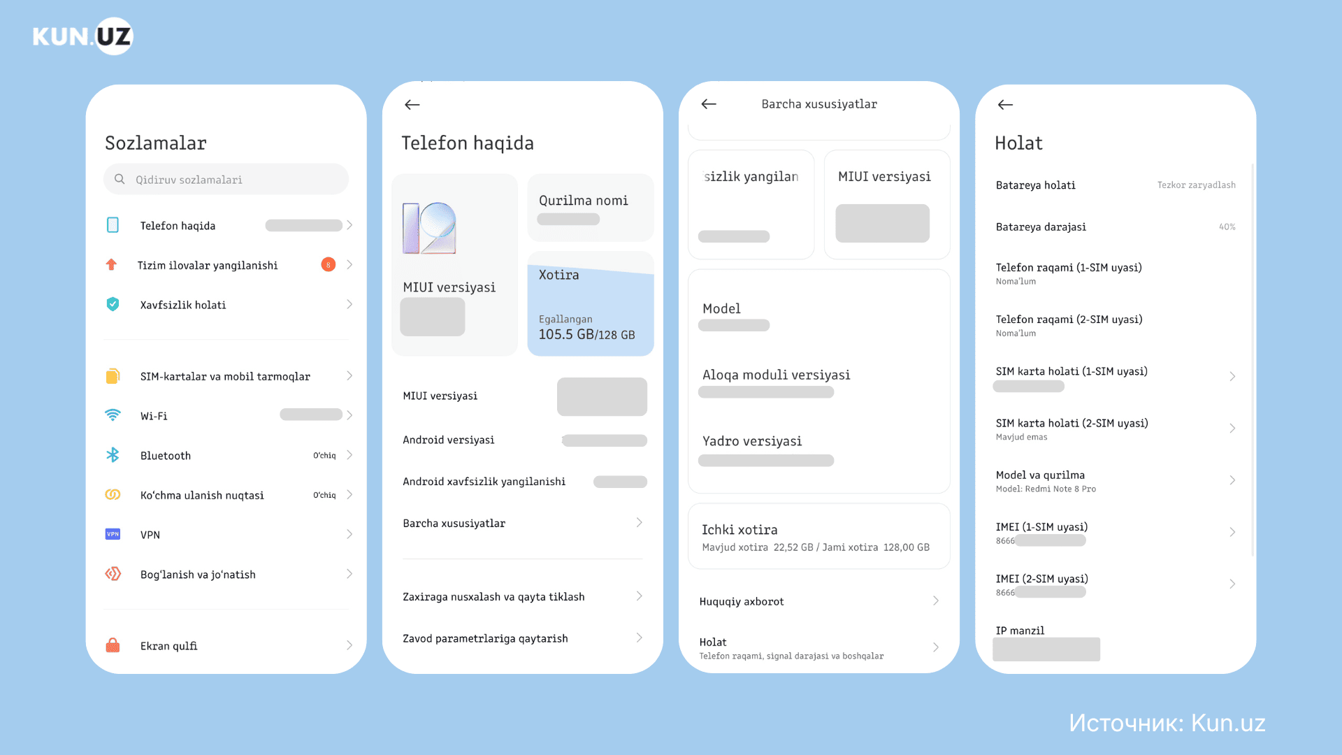 - IMEI registration is required to use mobile networks in Uzbekistan. Without it, the phone will be blocked. Service will be restored only after registration.
