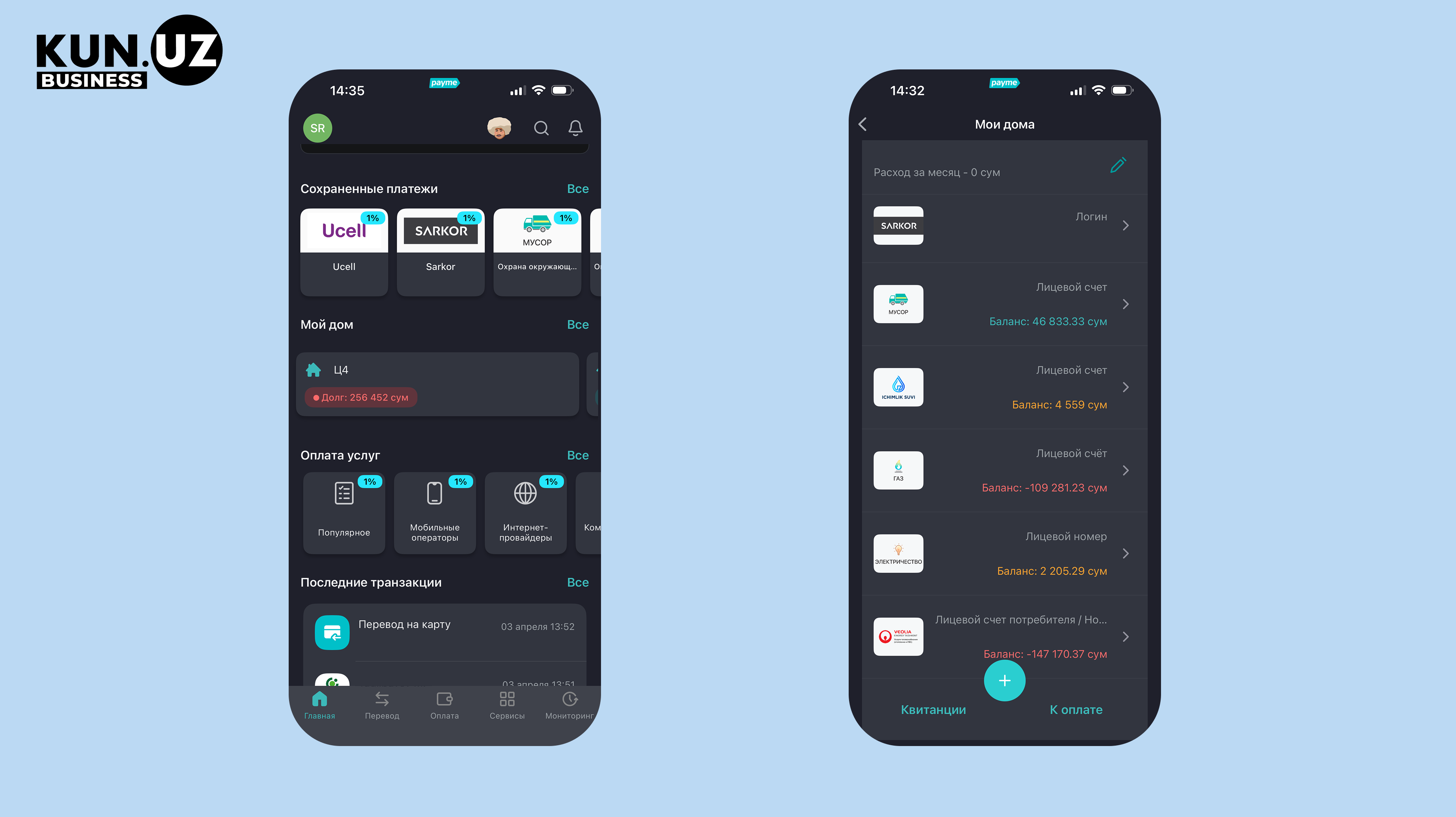 Payme includes a “My Home” section with all utility services.