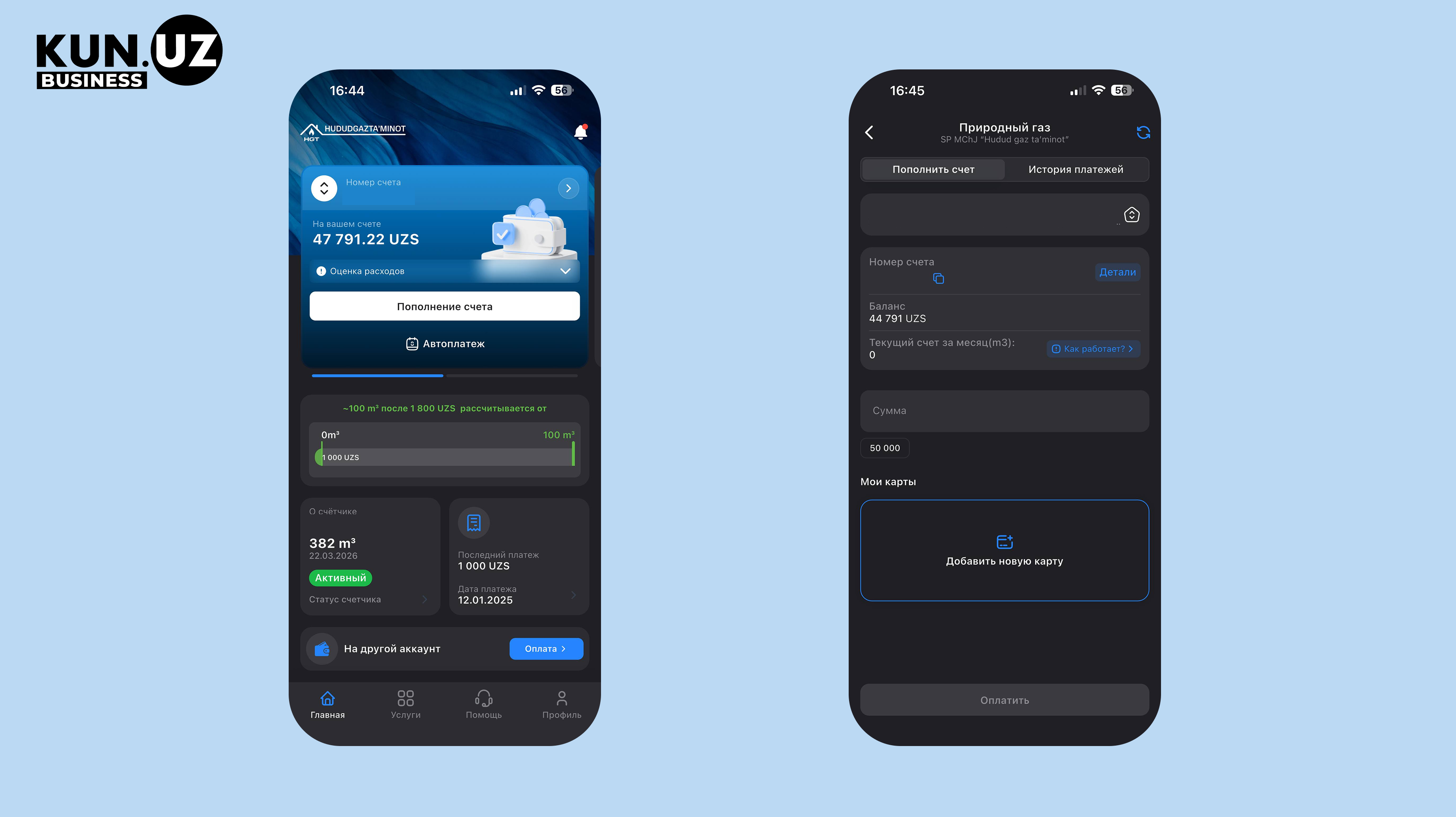 You can pay for gas via mobile apps, personal accounts, or payment terminals. Payment must be made by the 10th of each month. Late payments incur a penalty of 0.1% per day, but no more than 50% of the total debt.