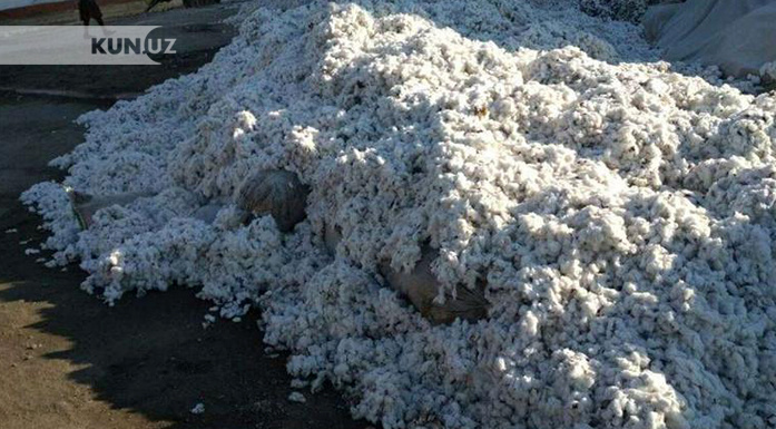 Cotton harvest is mixed with sand bags in Andijan to cover the set targets illegally