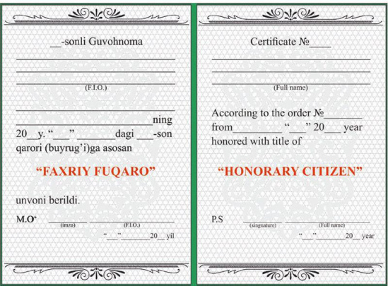 The title “Honorary citizen” to be established in Uzbekistan