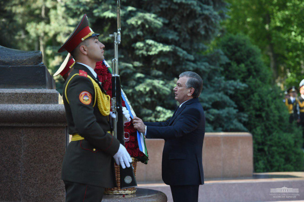 Shavkat Mirziyoyev lays flowers at Sorrowful Mother Monument