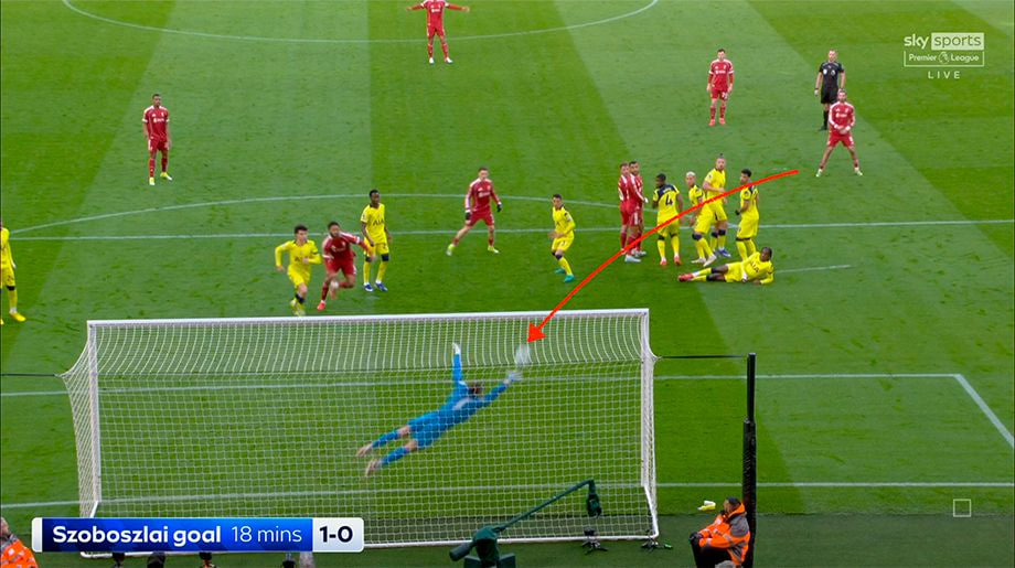 Аммо 20-дақиқада айнан Соуза жарима майдони яқинида фол ишлатди ва тўпга Собослаи яқинлашди. Венгриялик яримҳимоячи бу мавсумда жарима зарбаларини ажойиб ижро этиши билан ажралиб турибди. У бу сафар ҳам тўпни тўғри дарвоза тўрига йиғлади ва бу унинг АПЛ жорий мавсумида жарима зарбасидан урилган тўртинчи голи бўлди – бу «Ливерпул» учун рекорд кўрсаткич.