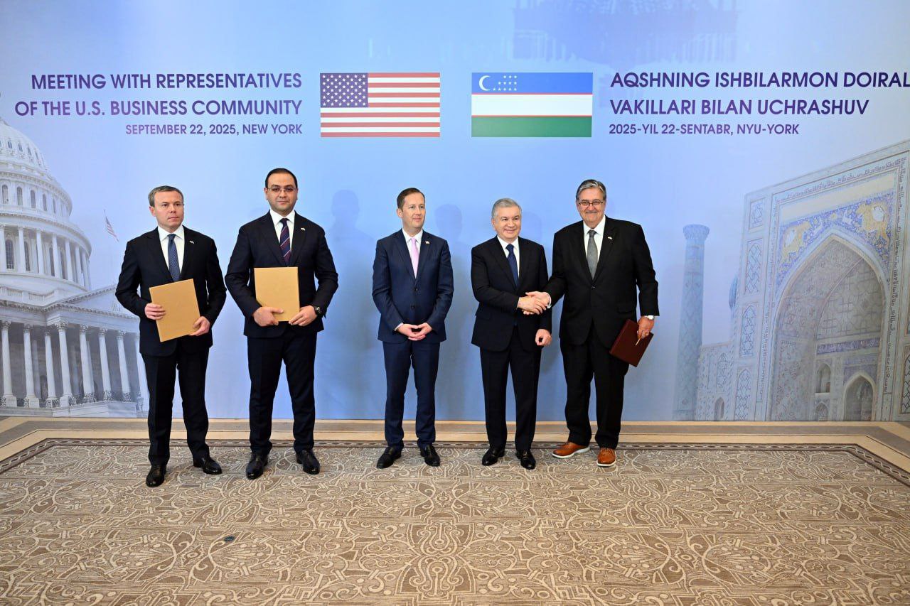 АҚШнинг етакчи компаниялари, инвестиция фондлари ва молия институтлари раҳбарлари билан ўтказилган давра суҳбатидан сўнг Ўзбекистон президенти Шавкат Мирзиёев ва АҚШ президентининг махсус вакили Сержио Гор ҳузурида икки томонлама битимларни алмашиш маросими бўлди.