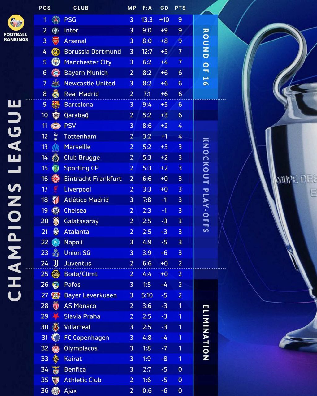 Йирик ғалабага қарамай, Европанинг амалдаги чемпионлари ҳимоясида муаммолар кўзга ташланмоқда. Забарнийнинг фолидан кейин парижликлар дарвозасига пеналти қўйилди, аммо Грималдо бу имкониятдан фойдалана олмади, кўп ўтмай Андрих тирсаги билан Дуэнинг юзига уриб юборгани учун қизил карточка олди ва мезбонлар бир киши кам бўлиб қолишди. Аммо Забарний яна ҳунар кўрсатди ва яна жарима майдони ичида қўполлик ишлатиб, иккинчи пеналтига сабабчи бўлди, етмаганига қизил карточка олиб майдонни тарк этди. «10 га 10» форматида ҳам Луис Энрике шогирдлари мезбонларга ҳеч қандай имконият қолдирмади. Дуэ дубл муаллифига айланди. Учинчи голли ҳужумда Дезирега ассистентлик қилган Кварацхелия бўлим охирида кучли зарба билан ҳисобни тенглаштирди. Иккинчи бўлим бошида Мендеш ҳисобдаги фарқни оширди, захирадан ўйинга қўшилган Дембеле ҳам ўз голини урди, сўнгги дақиқаларда эса Витиня якуний ҳисобни ўрнатди – 7:2. Уч ўйинда уч ғалабага эришган «ПСЖ» тўплар нисбатига кўра яхшироқ кўрсаткичга эга бўлгани учун турнир жадвалини бошқаришда давом этмоқда.