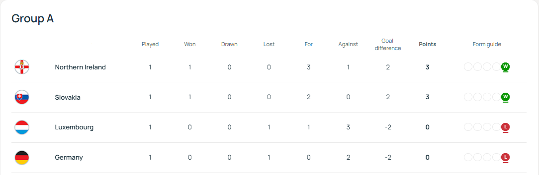 Германия қаторасига тўртинчи ўйиндирки ғалаба қозона олмаяпти, қаторасига учинчи ўйинда мағлубиятга учради. Мартда италянлар устидан қозонилган 2:1 ҳисобидаги ғалабадан кейин худди шу жамоа билан – 3:3 ўйналди (немислар 3:0 ҳисобида олдинга борган ва бу устунликни бой берганди), кейин эса уч мағлубият қайд этилди: Миллатлар лигасида Португалиядан 1:2 ва Франциядан 0:2, энди эса ФИФА рейтингида 52-ўринда турган жамоадан 0:2 ҳисобида.