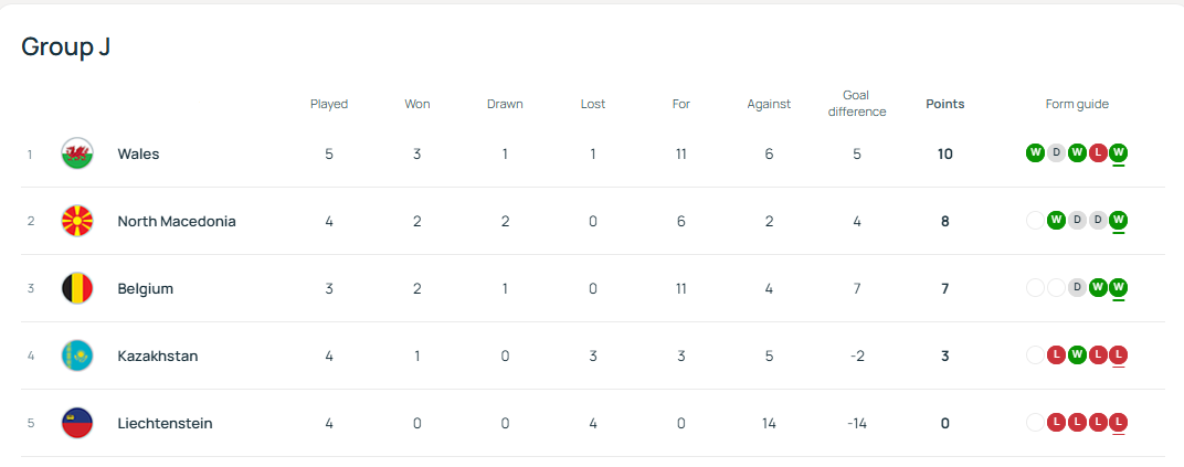 Гуруҳ жадвалида ҳозирча учинчи ўринда турган Белгия (жамоа иштирокини фақат ёзда бошлаган ва камроқ ўйин ўтказган) эса аутсайдарга қарши ўйинда ҳеч қандай муаммога учрамади. Лихтенштейн биринчи бўлимда муносиб қаршилик кўрсатди ва биргина гол ўтказиш билан чекланди, аммо иккинчи бўлимда мезбонлар ҳимояси пароканда бўлиб кетди. Юри Тилеманс дубл расмийлаштирди. Биринчи голни олис масофадан ажойиб зарба йўллаб, иккинчисини пеналтини аниқ ижро этиш орқали урди. Шу куни Тибо Куртуа ва Кевин Де Брюйне майдонда эканига қарамай, айнан Юри сардорлик боғичида жамоани бошлаб тушганди. Шу ёзда АПЛга ўтган Максим Де Кюйпер эса «гол+пас» бўйича 2 (1+1) очко ишлади. Ўйинга якуний нуқтани «Лион»да мавсумни кучли бошлаган 20 ёшли Фофана қўйди – 6:0.