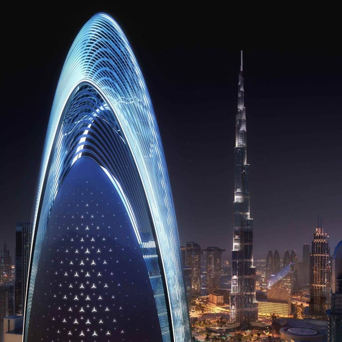 Дубайда, Бурж-Халифа яқинида қурилаётган Binghatti девелоперининг янги осмонўпар биноси эса автомобил ишлаб чиқарувчи Mercedes-Benz бренди остидаги илк турар жой лойиҳаси бўлади.