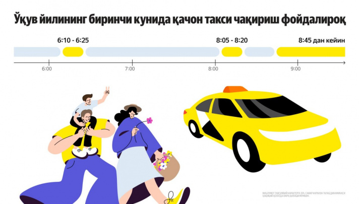 Янги ўқув йилининг илк кунида такси чақириш учун қулай пайтлар тахмин қилинди
