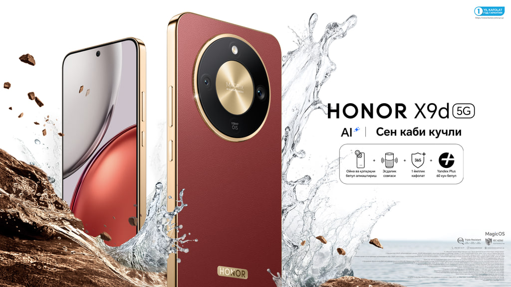HONOR яна ҳайратда қолдирди: янги ултра-мустаҳкам HONOR X9d тақдим этилди!