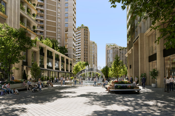 Ҳудудда аҳоли учун шахсий майдонлар ва сервис хизматлари, халқаро мактаб ва болалар боғчаси, A ва B тоифасидаги бизнес-марказлар, жаҳон брендлари бутикларидан иборат shopping-авеню, шунингдек, фитнес-марказ ва премиум-класс клиника кўзда тутилган.