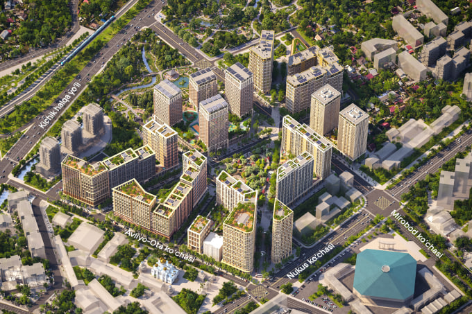 Лойиҳанинг асосий хусусиятларидан бири — майдони 2,6 гектар, узунлиги 530 метрни ташкил этувчи, ресторан ва кафеларга эга сквер-паркдир. Бу маскан шаҳар марказининг ўзида табиат бағрида сайр қилиш, дам олиш ва сифатли ҳаёт кечириш имконини беради.