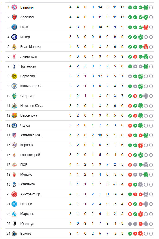 Умуман олганда, «Арсенал» бу мавсумда ҳимояда ўта ишончли ўйнамоқда – 33:3. ЕЧЛнинг кейинги турида ёки «Бавария» илк бор очко йўқотади, ёки «Арсенал» қуруқ сериясини тўхтатади.