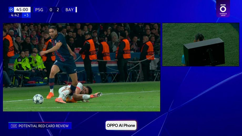 Ўн дақиқа ўтиб «Бавария» яна бир гол урди: бу сафар Диас Маркиноснинг сусткашлигидан фойдаланди. «ПСЖ» биринчи бўлимнинг ўзида учинчи тўпни олиб чиқиши мумкин эди, аммо меҳмонлар бир неча вазиятда уларни кечиришди. Танаффус арафасида эса Диас антиқаҳрамонга айланди, у Ашраф Ҳакимига қарши ўта қўпол ўйнади ва қизил карточка олди.