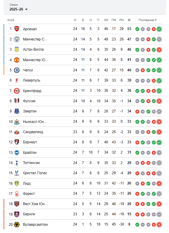Якунда ҳисоб бошқа ўзгармади ва бу Лондоннинг бошқа бир жамоаси – турнир жадвали пешқадами «Арсенал» фойдасига хизмат қилди. Энди Артета шогирдлари иккинчи ўрин билан орадаги фарқни олти очкога етказиб олди.