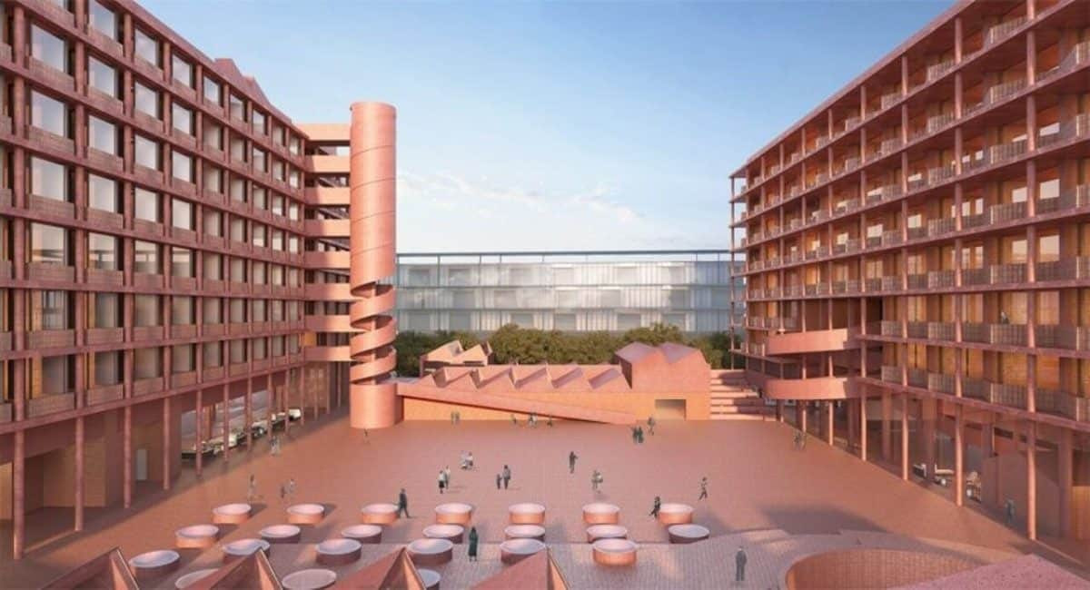 Хитойнинг Neri&Hu студияси Цзиндэчжэндаги собиқ фарфор заводи ҳудудида иккита янги меҳмонхонани лойиҳалади. Ҳар иккиси ҳам саккиз қаватли бинодир ва кўтарилган майдон (платформа) устида жойлашади. Черепицали том эски завод силуетига ишора қилади, комплекс безагида эса қизил бетон, қизил керамика ва қизил ғишт қўлланади.