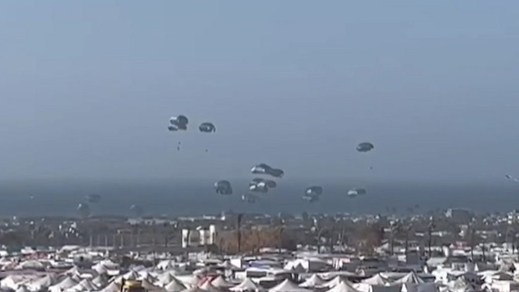 АҚШ ҳарбий С-130 юк самолётлари билан Ғазо секторига гуманитар ёрдам етказишни бошлади. Президент Жо Байден инсонпарварлик ёрдами карвонидан юкларни олишга уринган 100 дан ортиқ фаластинлик Исроил қўшинлари билан тўқнашувда ҳалок бўлганидан сўнг, уларни ҳаво орқали етказишни буюрган эди.