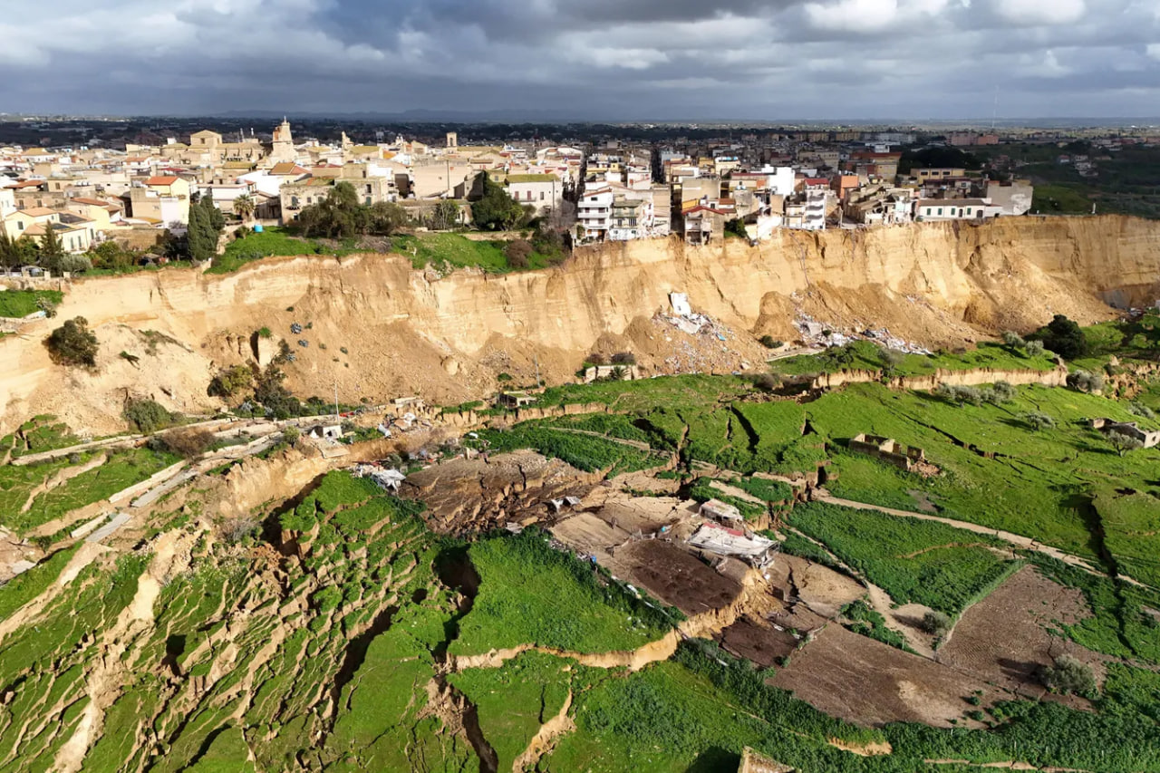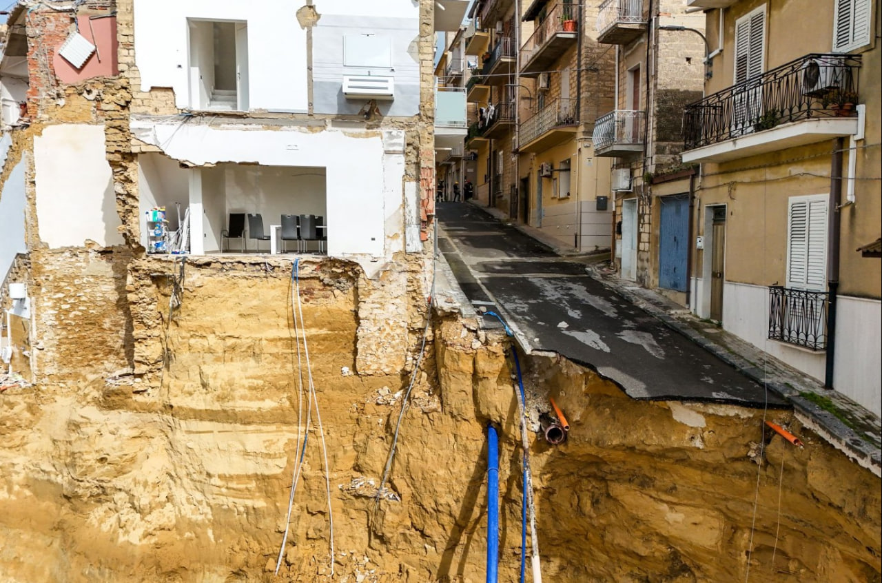 Сицилиядаги шаҳар кўчки туфайли жар ёқасига келиб қолди