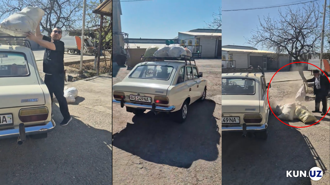 “Комби”машинасига чиқинди юклаган Ҳакимжон ота Аҳмедов 2025 йилнинг декабр ойида ҳам чиқиндиларни йиғиб, идора эшиги ёнига ташлаб кетганини айтади.