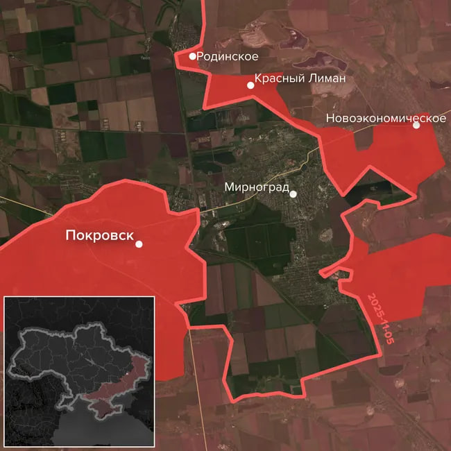 Покровскдан шимоли-шарқдаги Мирноградни ва унинг жанубидаги ҳудудларни Украина қуролли кучларининг амалда қуршовда қолган икки бригадаси ҳимоя қилиб турибди.