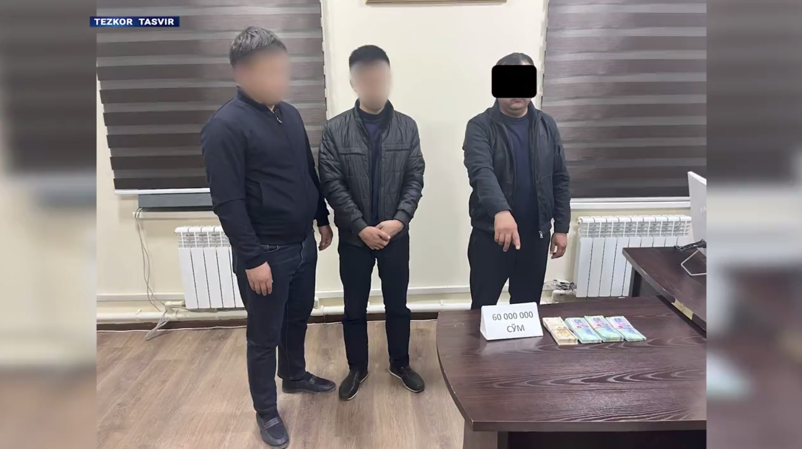 У қолган 60 млн сўмни Термиз шаҳридаги умумий овқатланиш шохобчасида олган вақтида Давлат хавфсизлик хизмати ва Бош прокуратура ҳузуридаги департамент ходимлари ҳамкорлигида ўтказилган тезкор тадбирда ушланган.