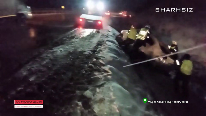 ФВВ қутқарувчилари Қамчиқда хандаққа тушиб кетган Nexia-2'ни олиб чиқди