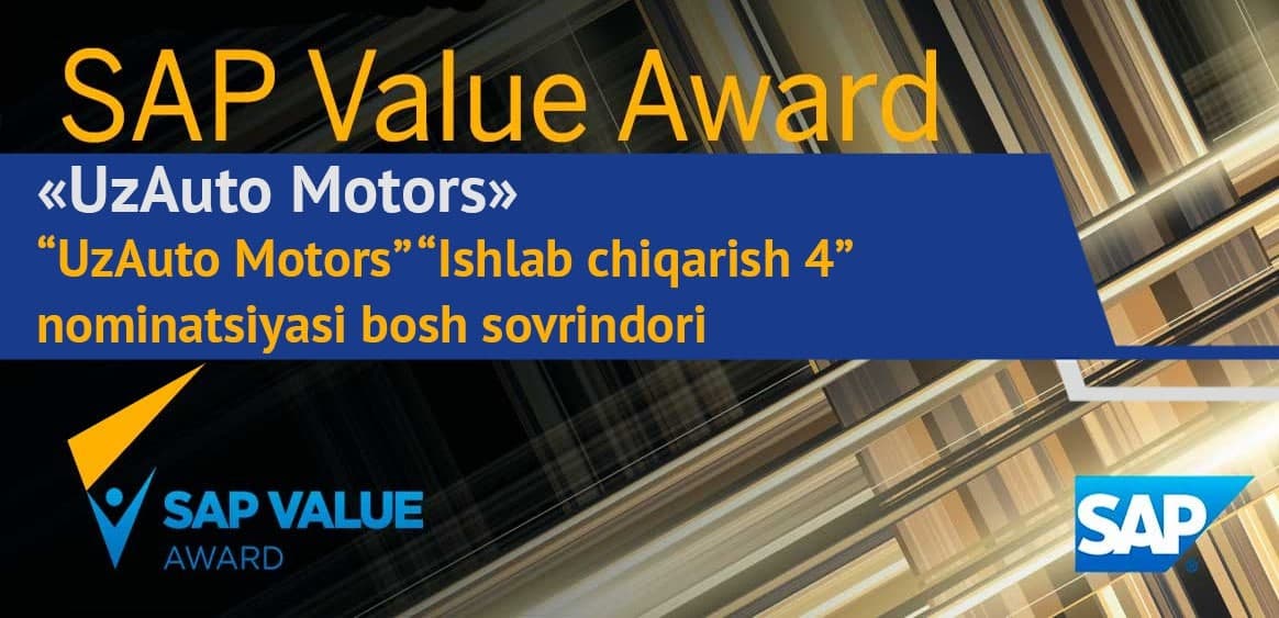 Жорий йилнинг 7 октябрь куни онлайн тарзда SAP Value Award халқаро мукофоти совриндорларини тақдирлаш маросими бўлиб ўтди. Ишлаб чиқаришни режалаштириш ва активларни бошқариш соҳасидаги “Ишлаб чиқариш 4.0” номинацияда UzAuto Motors'да SAP S/4HANA дастурининг амалга оширилиш натижалари учун «Ўзавтосаноат» АЖ бош номинацияни қўлга киритди.