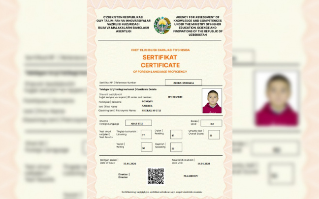 Паркентда 6-синф ўқувчиси араб тилидан B2 сертификатини қўлга киритди