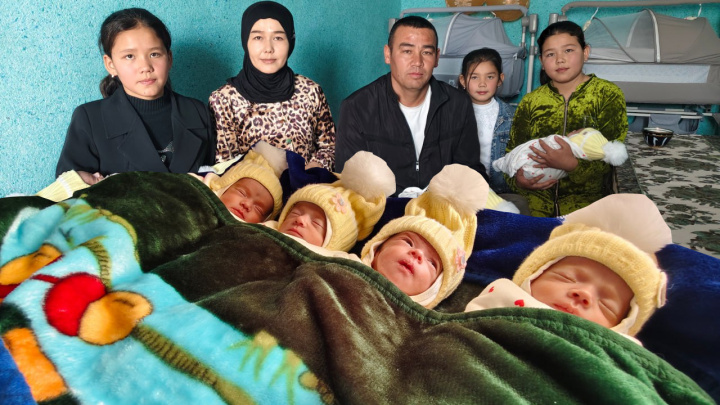 Тўққиз қизли Жасур - тўрт эгиз туғилган хонадондан репортаж