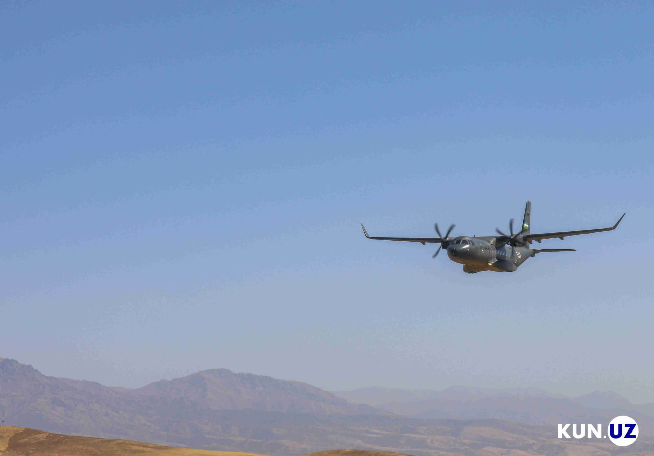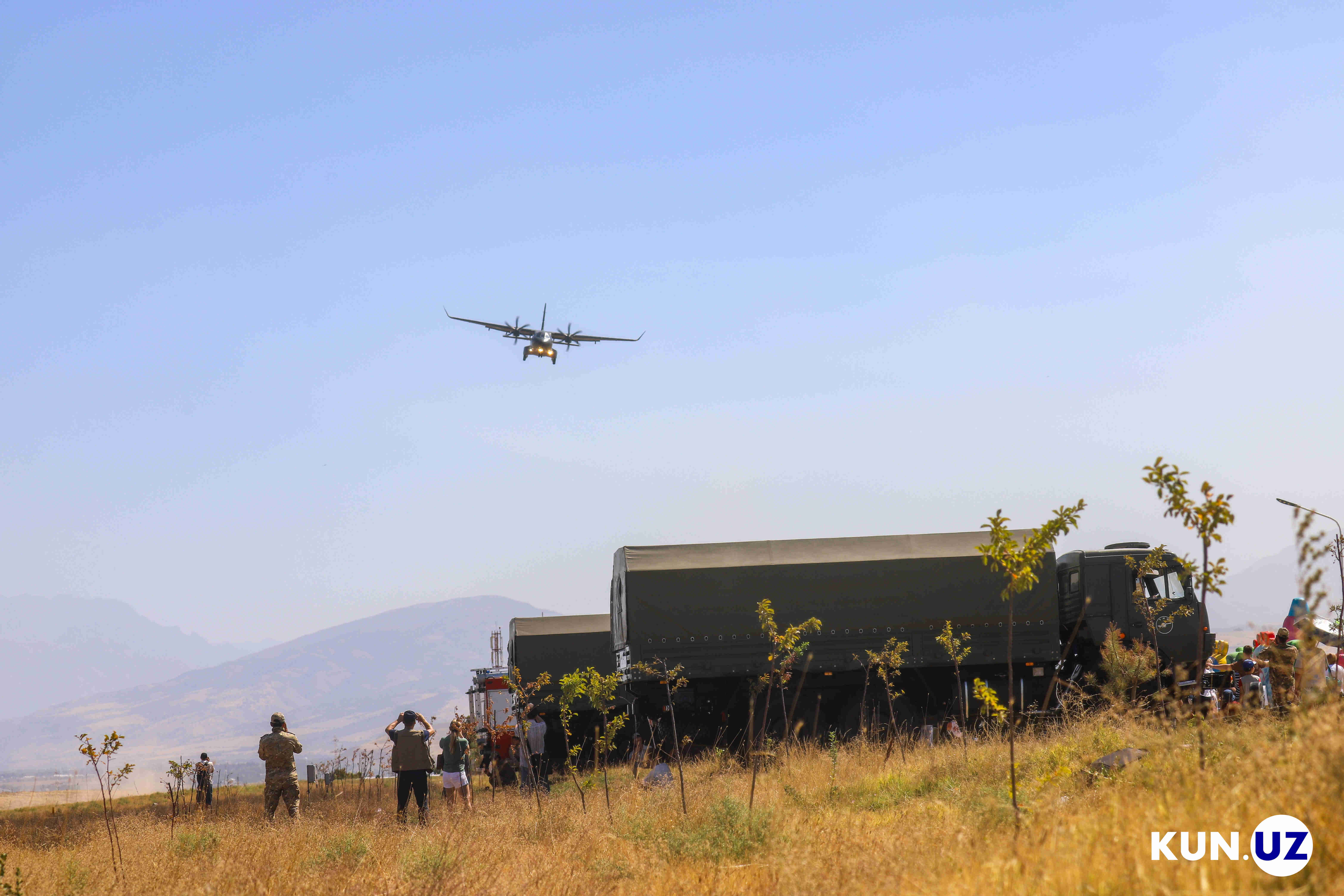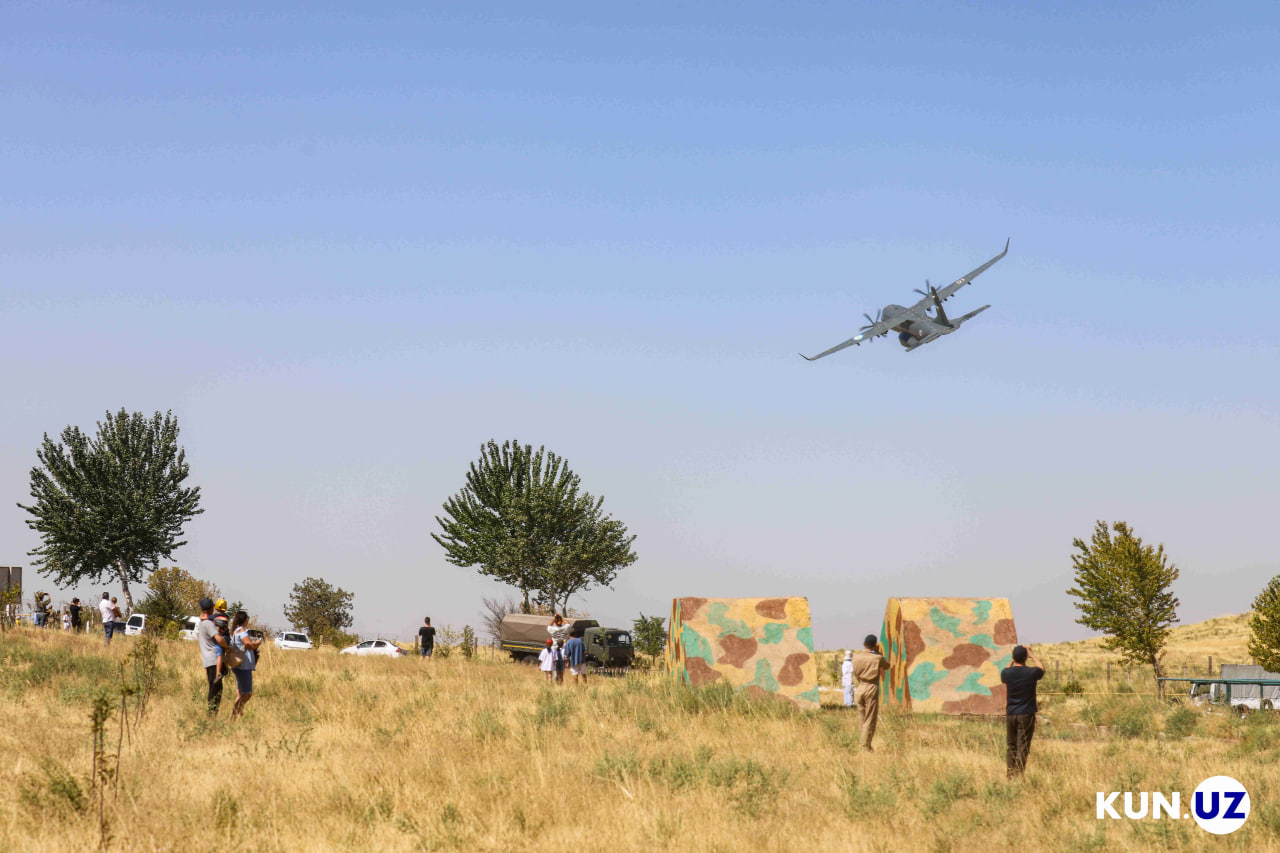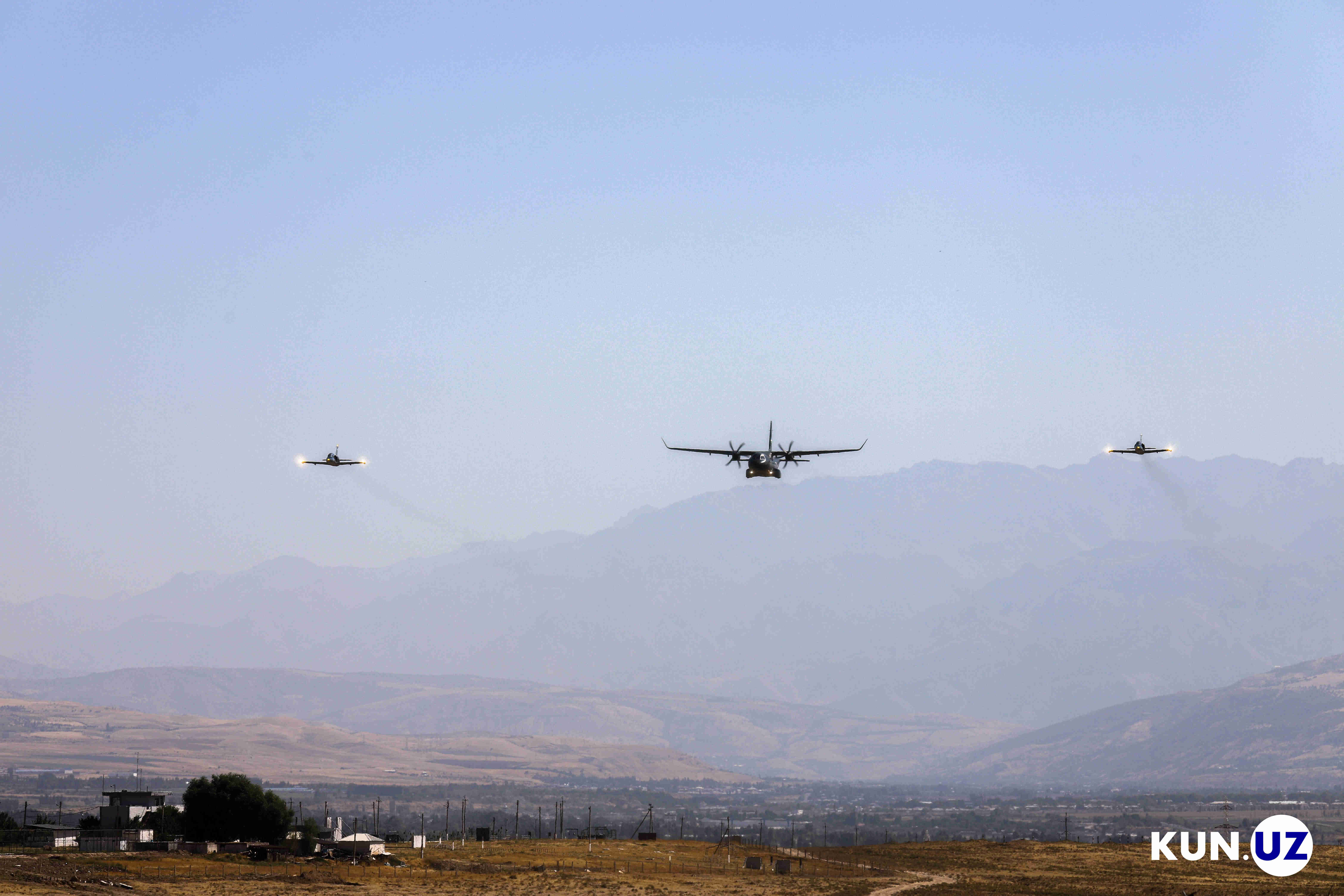 Kun.uz мухбири полигонда бўлиб, авиашоудан фоторепортаж тайёрлади.