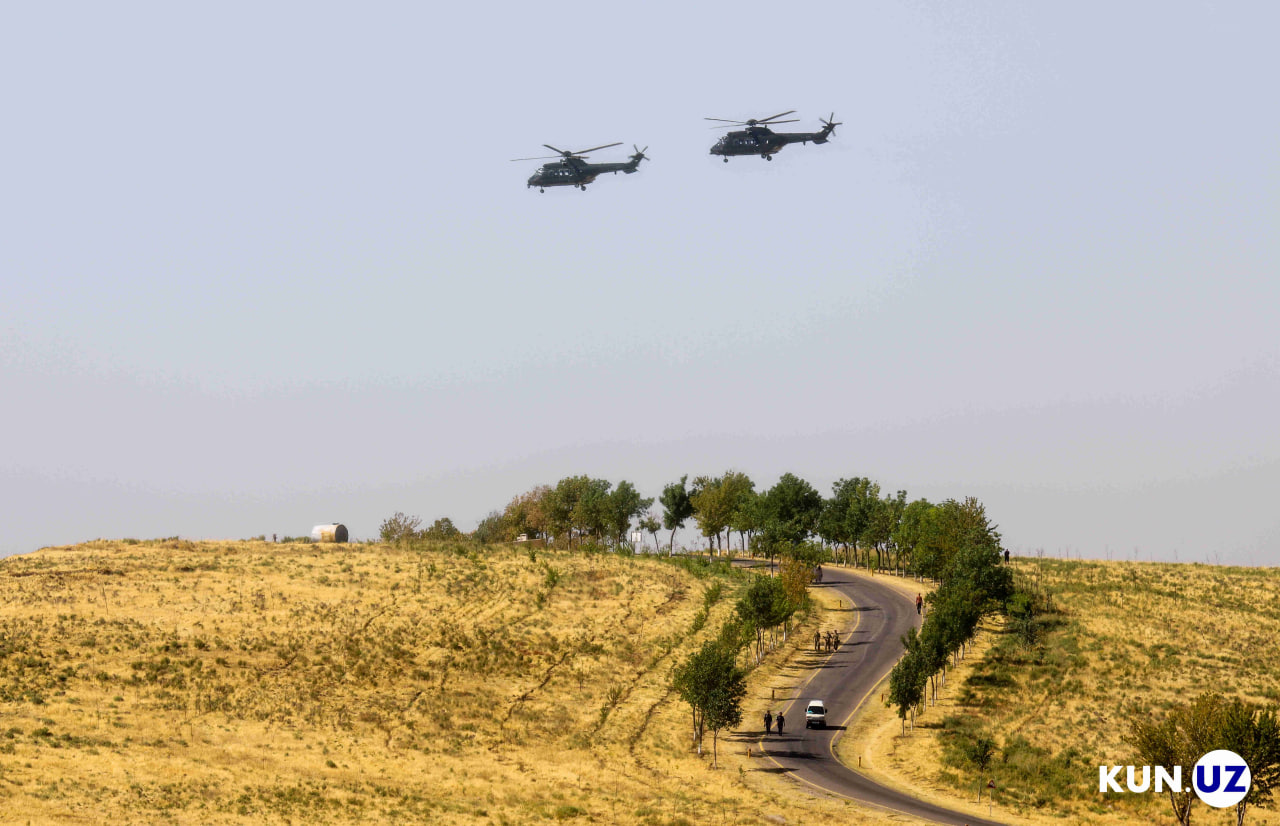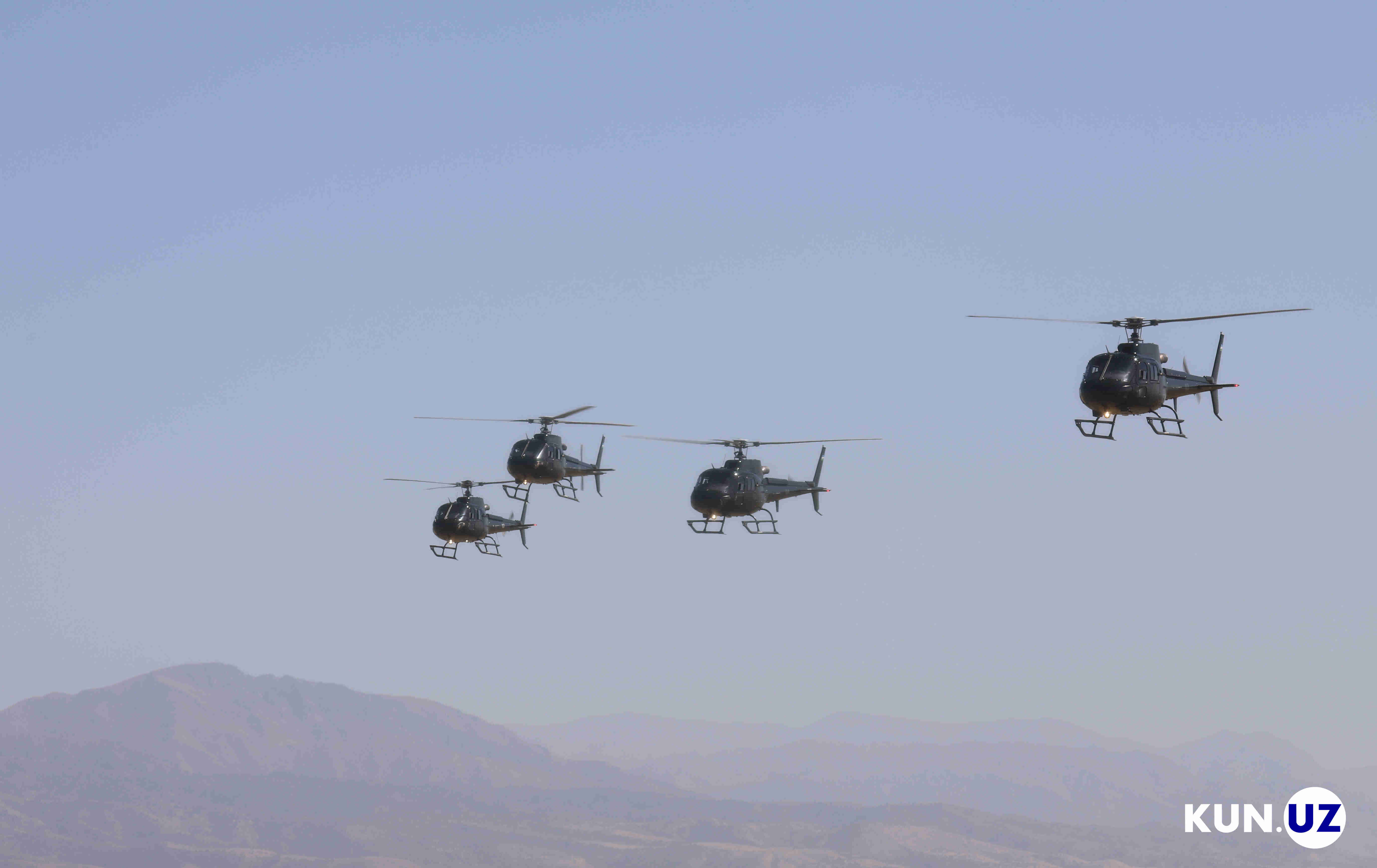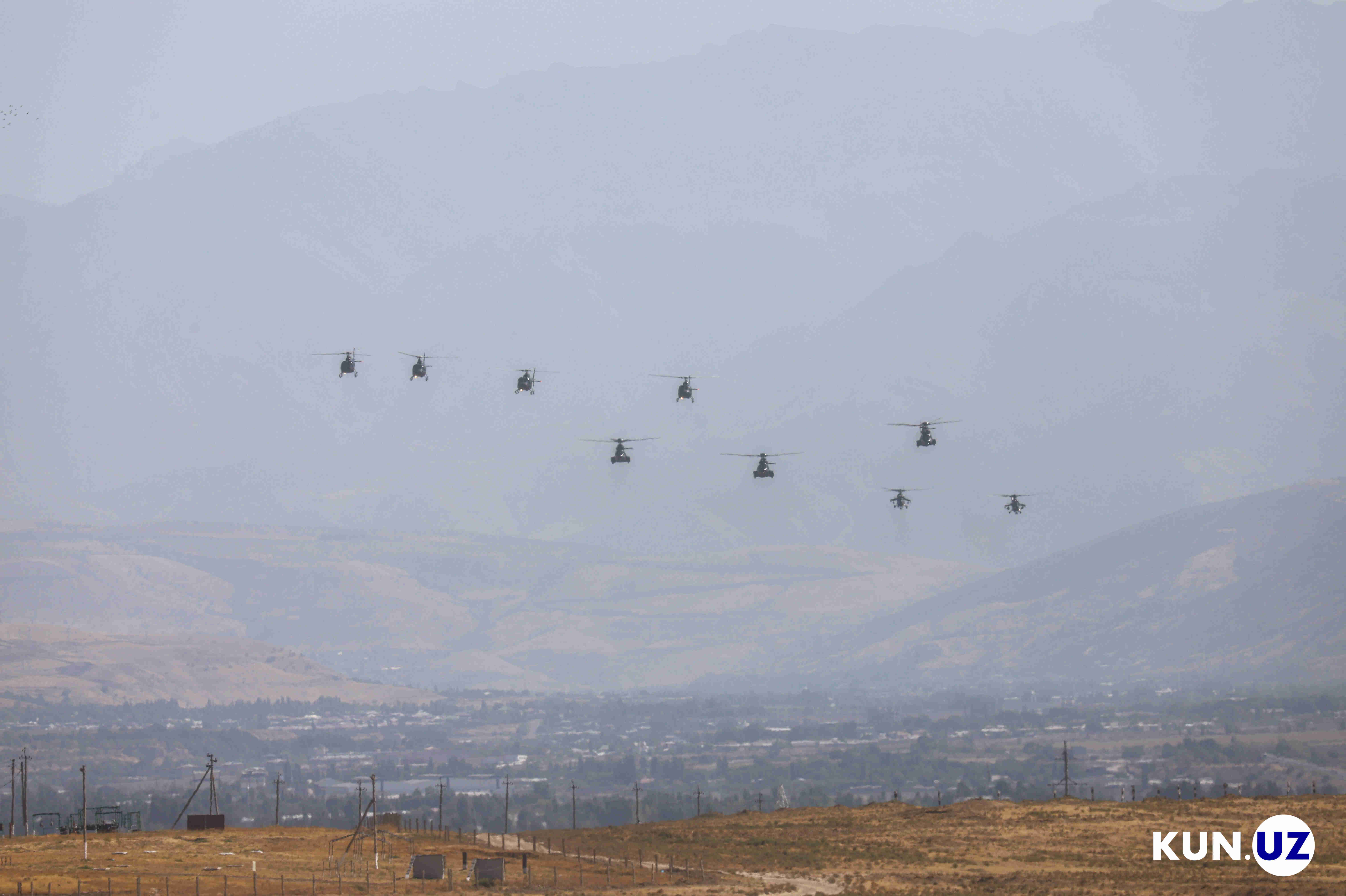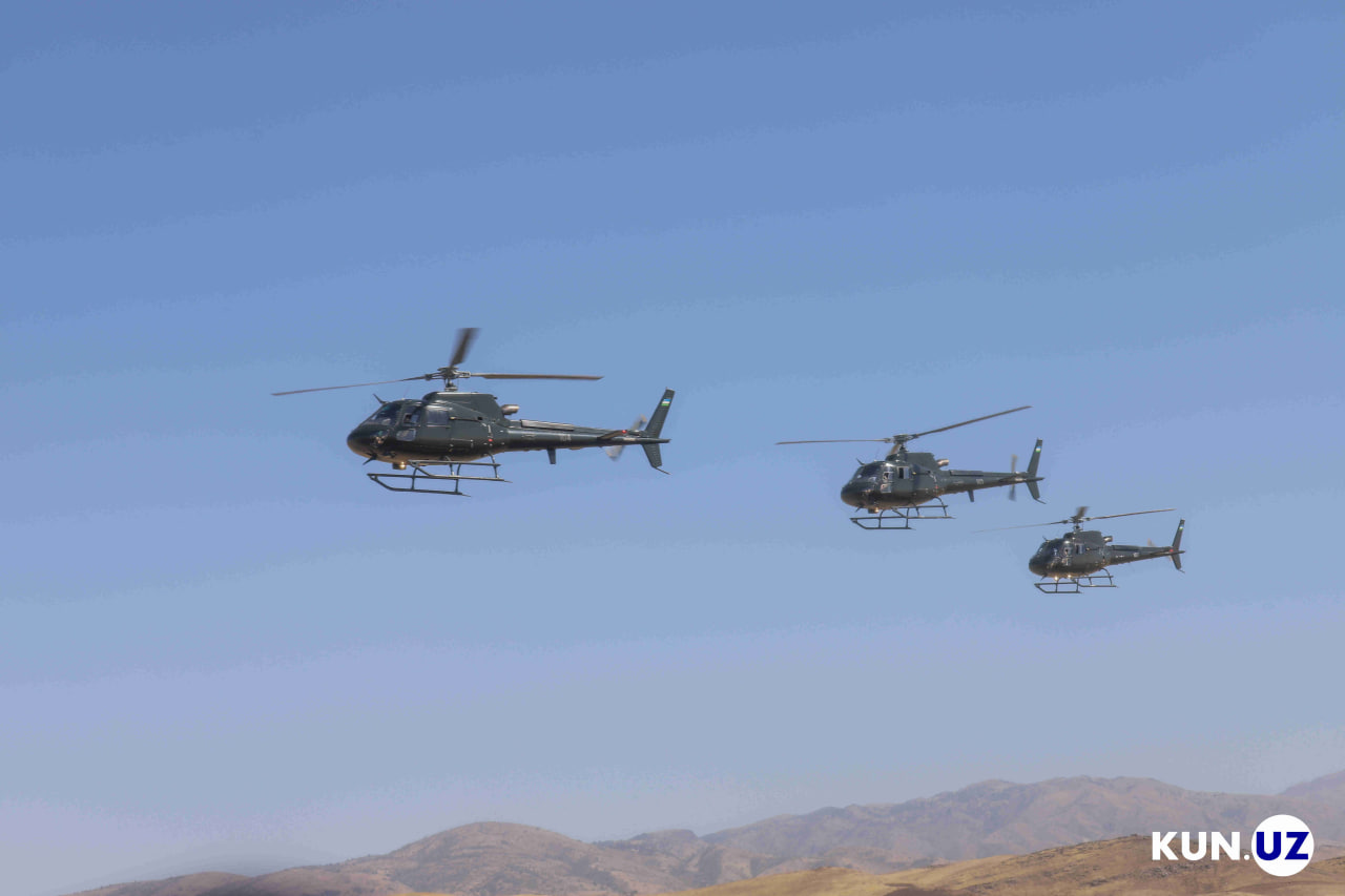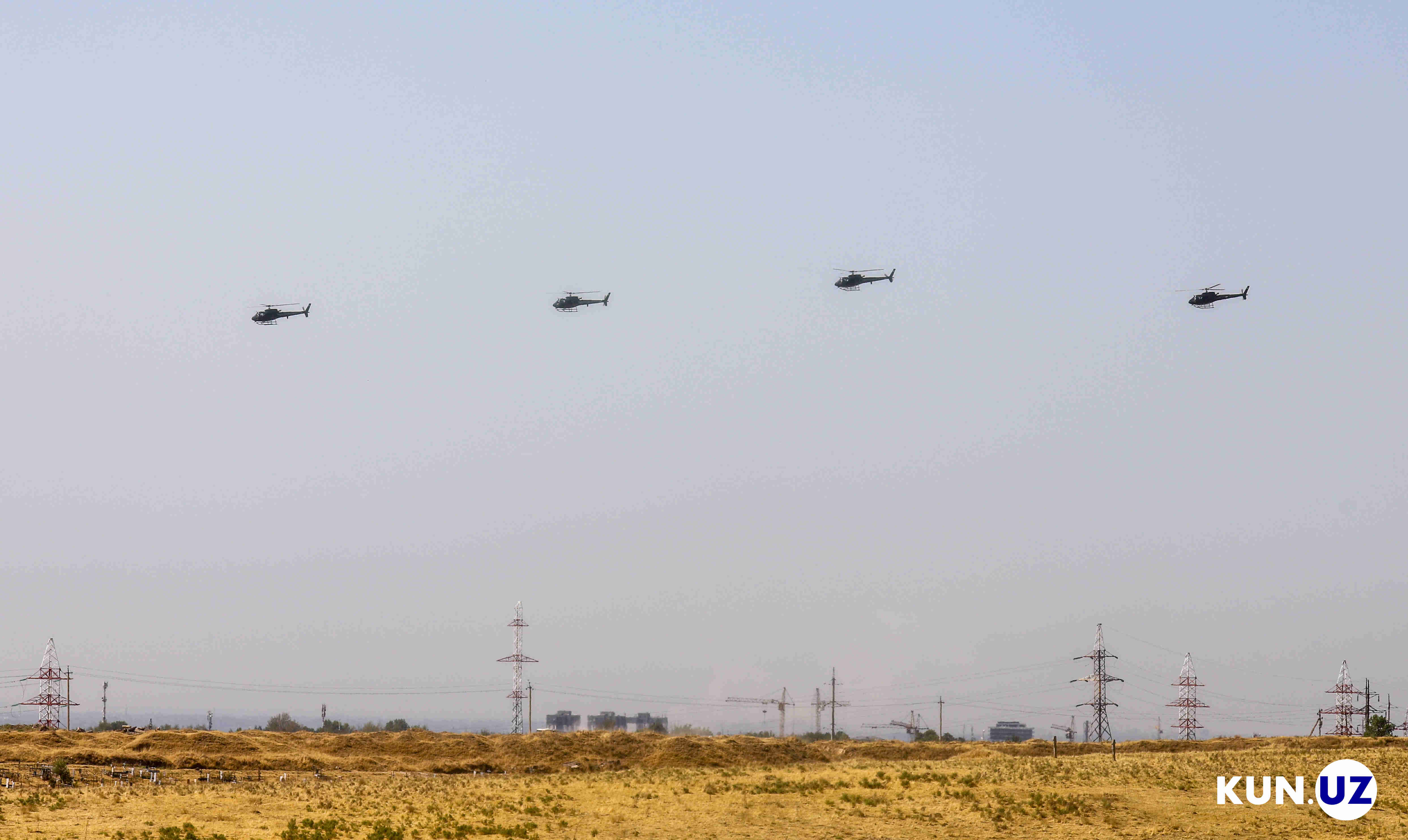 Kun.uz мухбири полигонда бўлиб, авиашоудан фоторепортаж тайёрлади.