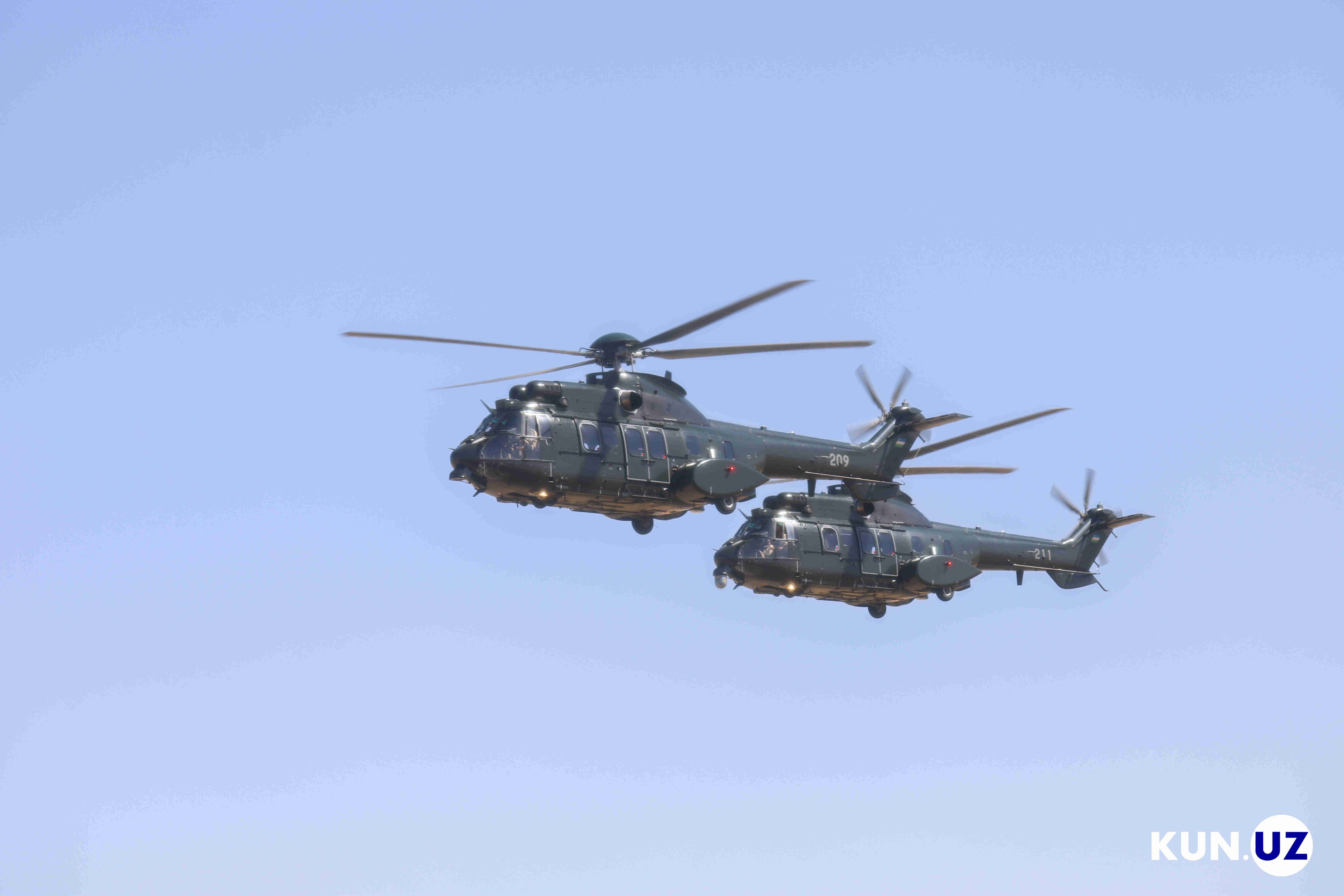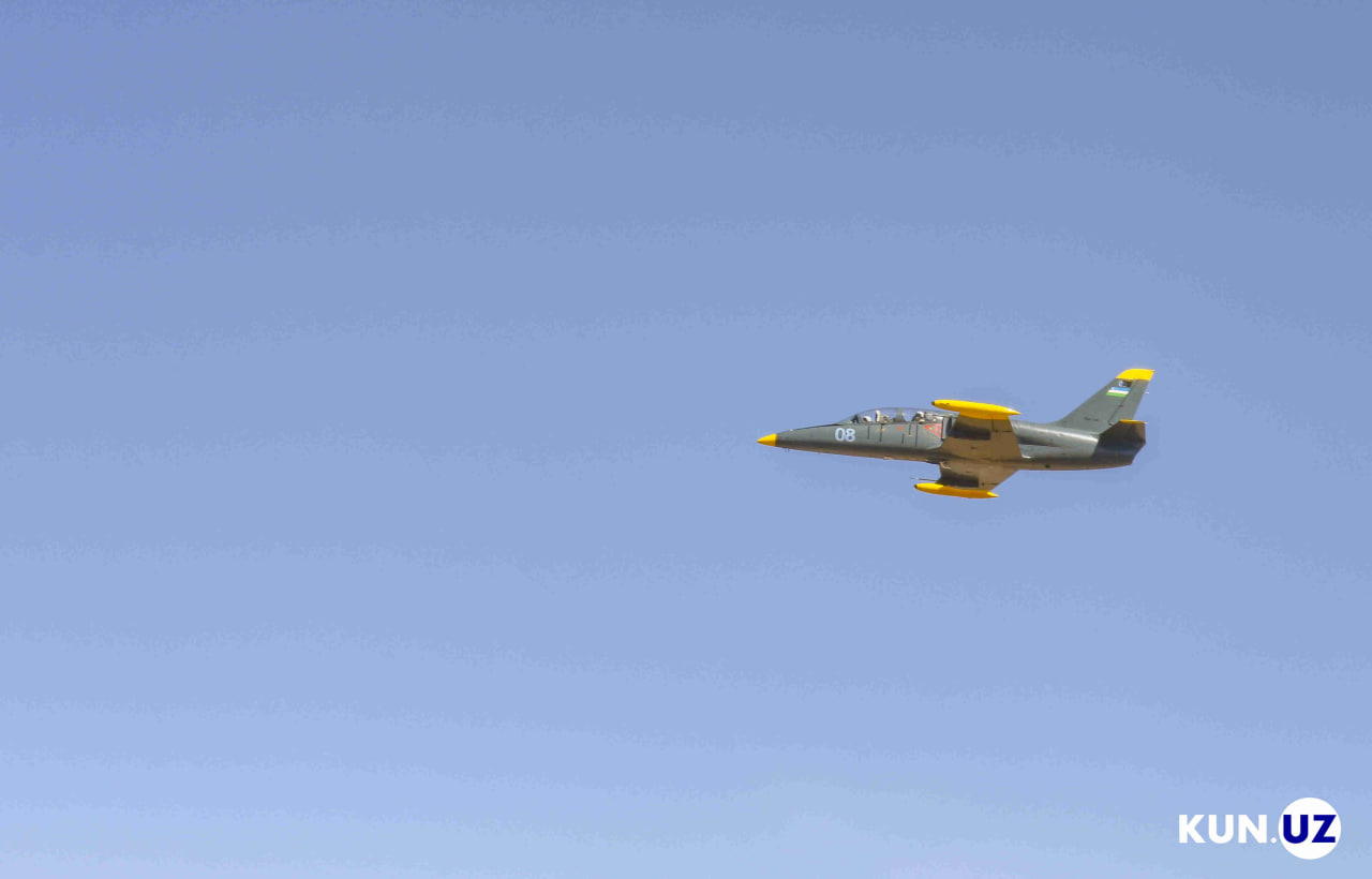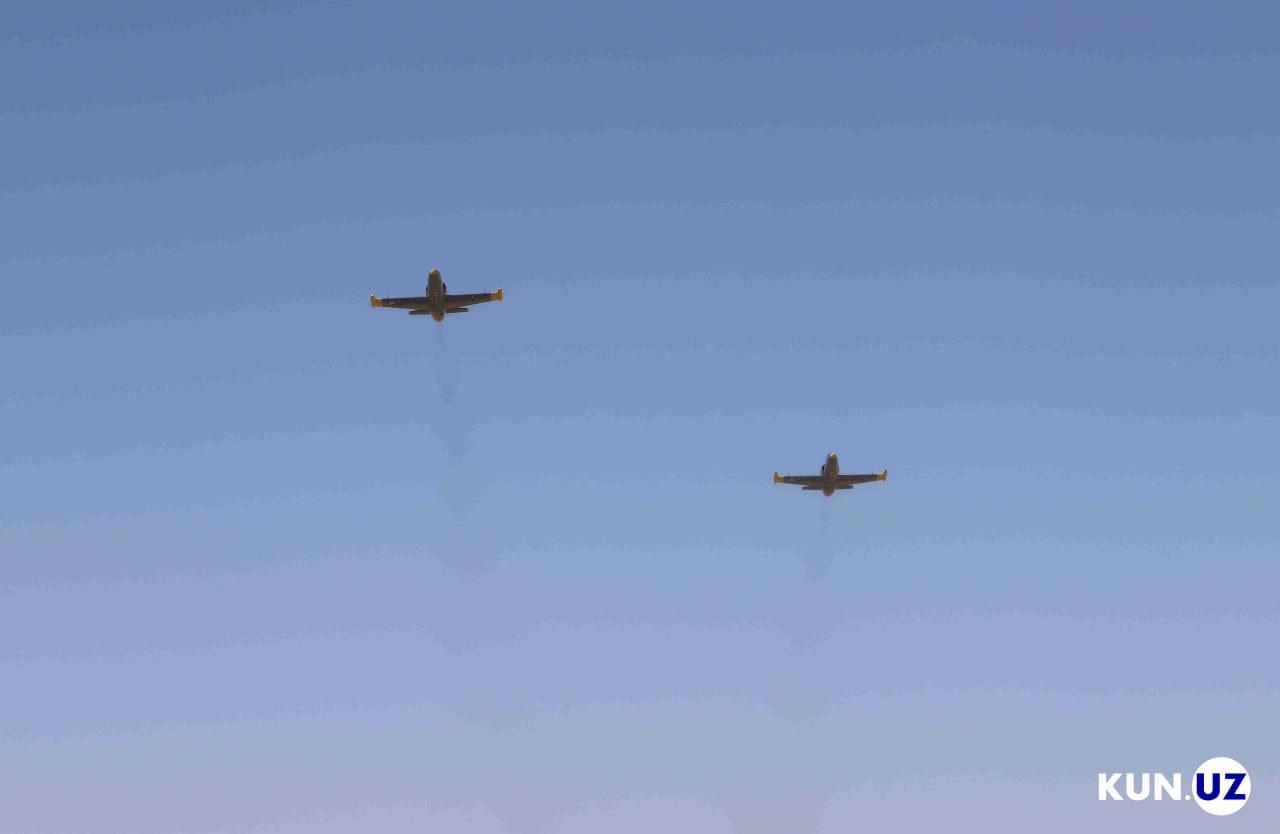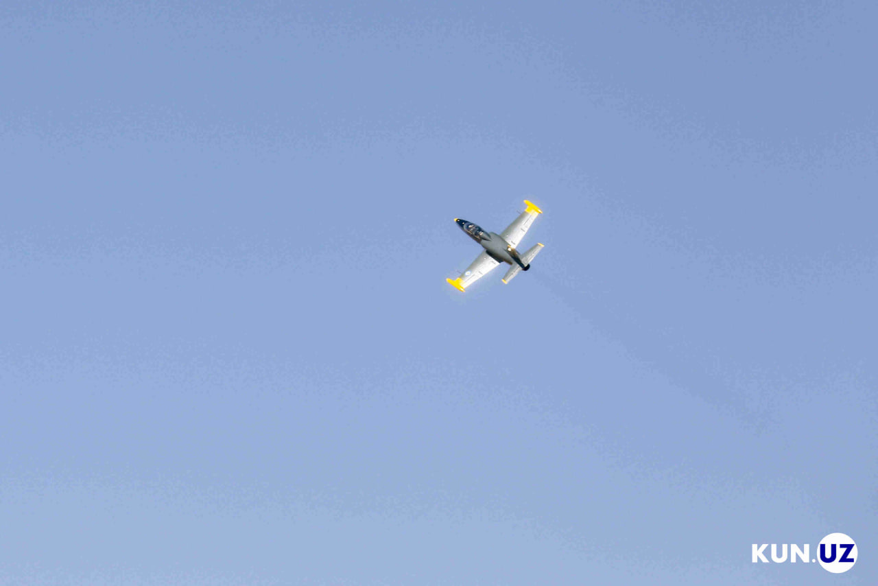 Вертолётлардан сўнг Albatros L-39 ўқув-жанговар самолётлари осмонда турли манёврлар амалга оширди.