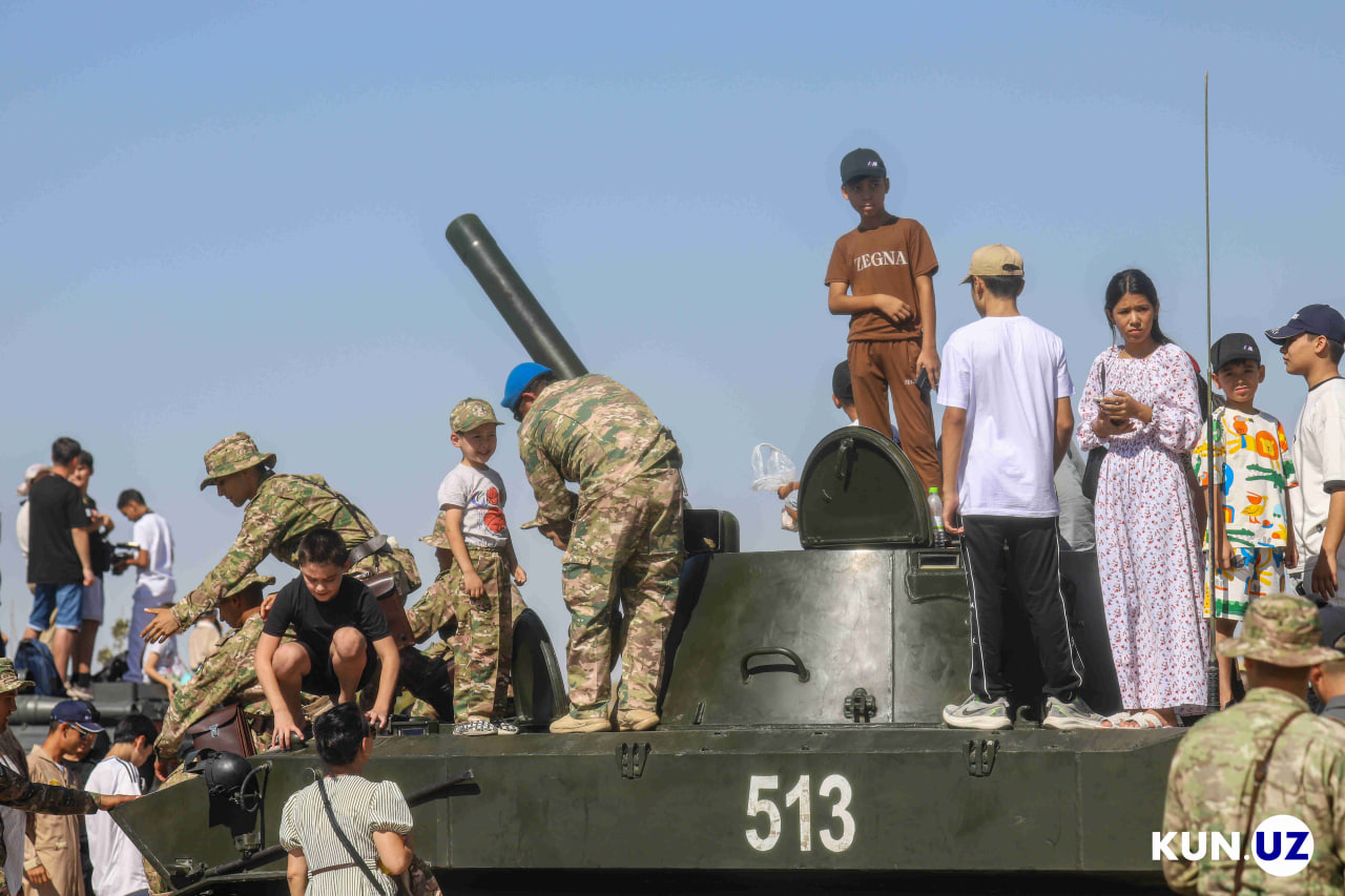 Дастлаб ҳарбий хизматчилар тайёрлаган турли саҳна кўринишлари, ҳарбий оркестр чиқишлар ўтказилди. Ҳарбий зирҳли техникалар ва айрим турдаги қуроллар томошабинлар ва айниқса, болалар учун қизиқарли бўлди.