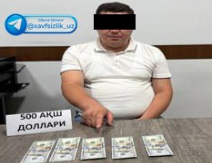 Қўриқлаш бошқармасининг Жиззах шаҳар бўлими назоратчиси иккита МЧЖ фаолиятида юзага келган солиқ қарздорлиги ва жарималарни танишлари ёрдамида камайтириб беришни ваъда қилиб, 500 доллар олган.