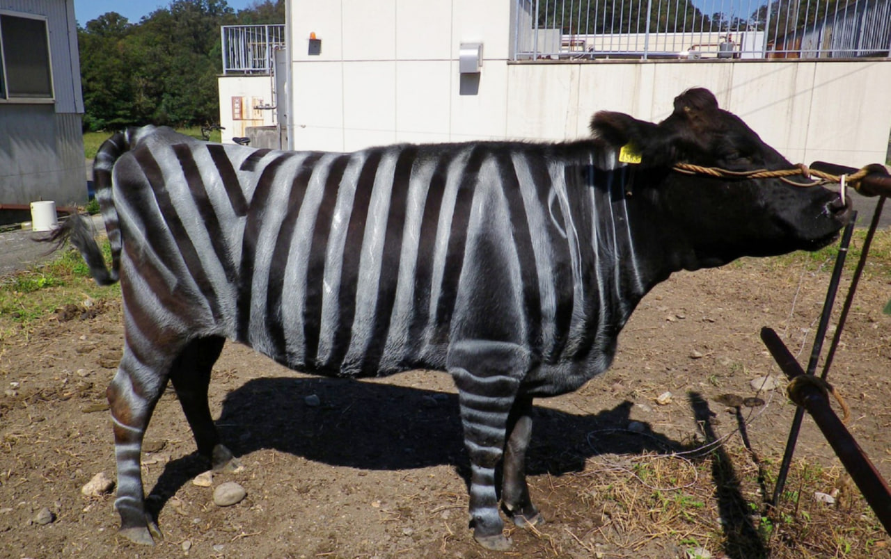 Япониялик олимлар сигирни зебра рангига бўягани учун Шнобел мукофотига сазовор бўлди