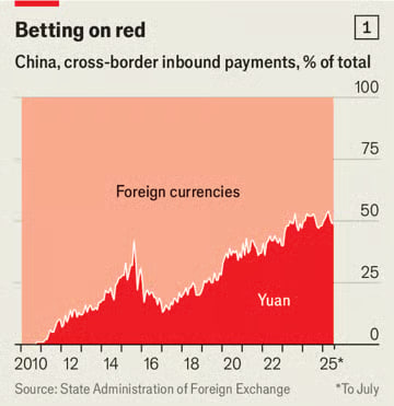 Қайд этиш лозимки, АҚШ дунёдаги энг катта иқтисодиётга айлангандан кейин ҳам долларнинг устунлигини таъминлаш учун ўнлаб йиллар ҳаракат қилган. Шу жиҳатдан қаралса, Хитой жуда тез ривожланяпти. Юаннинг халқаро тўловлардаги улуши 2022 йилдан бери икки баравар ошди. Бу асосан ички сиёсатдаги ўзгаришлар туфайли юз берди. Хитой ўзининг товар ва хизматлар савдосида юандан кўпроқ фойдаланишни бошлади — ҳозирда бу кўрсаткич 30 фоиздан ошган (2019 йилда 14 фоиз эди). Пекин барча трансчегаравий тушумларининг (молиявий оқимлар ҳам киради) 50 фоизидан кўпроғини юан орқали амалга оширади — бу кўрсаткич 2010 йилда атиги 1 фоиз бўлган.