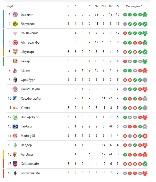 «Бавария»ни «Боруссия»дан ташқари «Лейпциг» ҳам таъқиб этмоқда, ушбу жамоа янги мавсумни амалдаги чемпиондан 0:6 ҳисобидаги йирик мағлубият билан бошлаганди, лекин тезда ўзига келиб қаторасига тўрт ўйинда ғалаба қозонди. Навбатдаги турда эса «Волфсбург» майдонига сафар қилган «ҳўкизлар» илк дақиқаларданоқ устунлик қилди ва биринчи голи офсайд туфайли бекор қилинган бўлса-да, кейинги ҳужумдаёқ ҳисобни очди. Бакайоко жарима майдони чизиғи олдида туриб яқин бурчакни аниқ нишонга олди ва мавсумдаги голлари сонини учтага етказди. Бу гол уч очко учун етарли бўлиб чиқди, меҳмонлар ўйин охирида ҳисобдаги фарқни ошириши ҳам мумкин эди, аммо Баумгартнер пеналтидан фойдалана олмади.