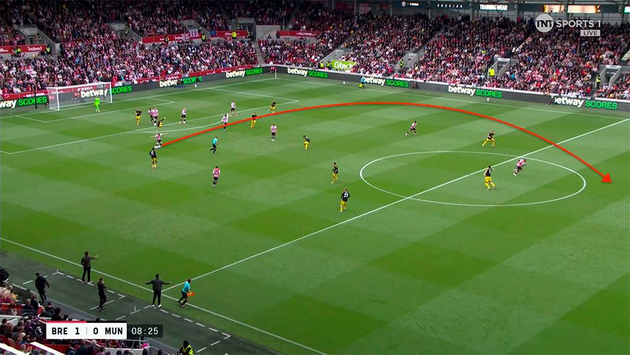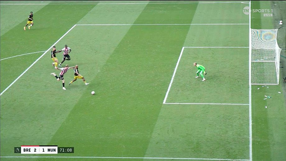 Иккинчи бўлим бошида «Брентфорд» яна рақибдан яхшироқ бошлади ва кетма-кет ҳужумлар уюштирди. Лекин гол кўпроқ меҳмонларга зарур эди ва Рубен Аморим 66-дақиқада иккиталик алмаштириш амалга оширди. Лени Йоро шу куни юқори ҳимоя чизиғида яхши ҳаракатлана олмаган Магуайрнинг ўрнига тушди. Таянч яримҳимоячиси Мануэл Угарте эса ҳужум вакили Кобби Майнуга ўрнини бўшатиб берди.