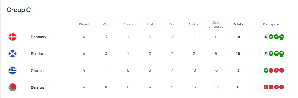 15 ноябр. Греция – Шотландия, Дания – Беларус.