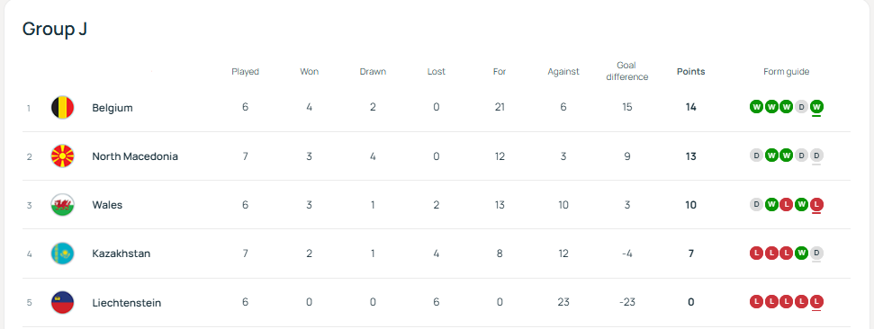 15 ноябр. Қозоғистон – Белгия, Лихтенштейн – Уэлс.