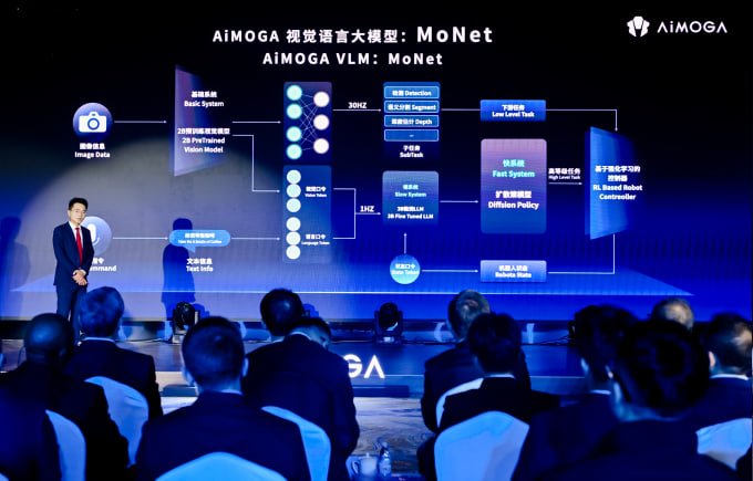 AiMOGA Robotics бош директори Чжан Гуйбин компаниянинг ривожланиш режасини тақдим этди. Ушбу режа ақлли автомобиллар ва робот технологияларининг чуқур интеграциясига асосланади. Яқин йилларда AiMOGA таълим, маркетинг, саноат ва маиший хизматлар каби турли соҳалар учун мўлжалланган гуманоид ва тўрт оёқли роботлар сериясини бозорга чиқаришни режалаштирган.